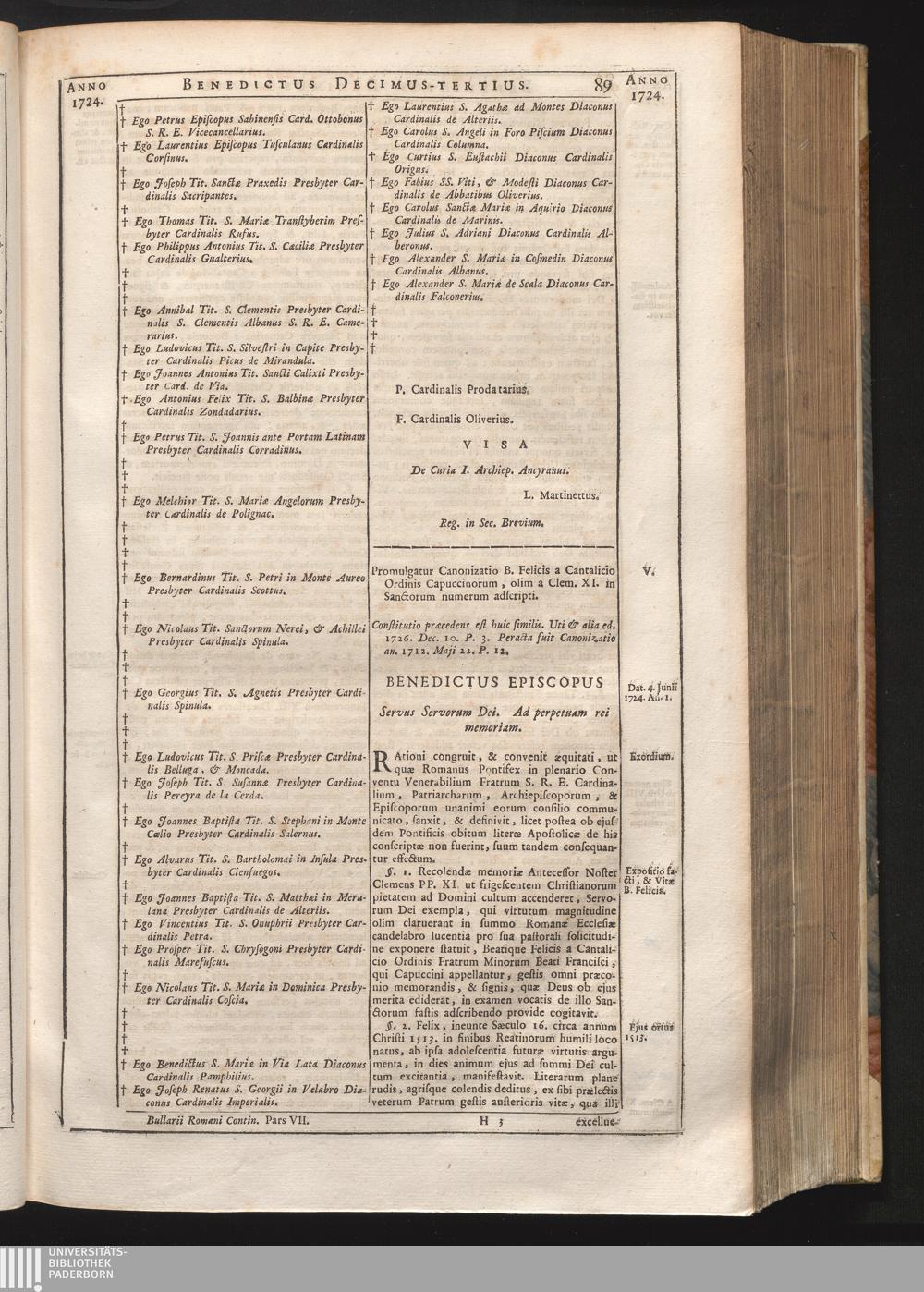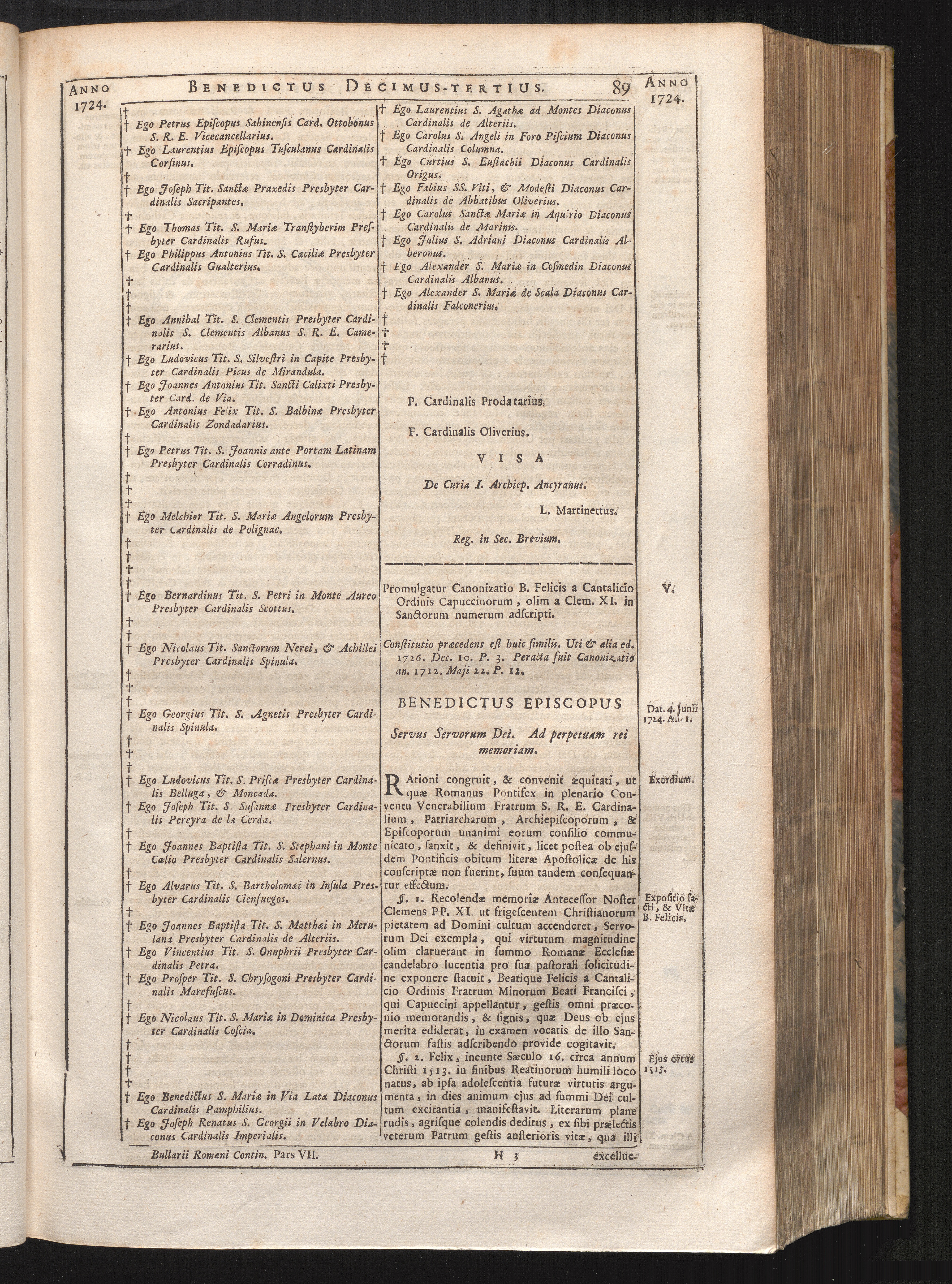 V. Promulgatio Canonizationis B. Felicis a Cantalicio.