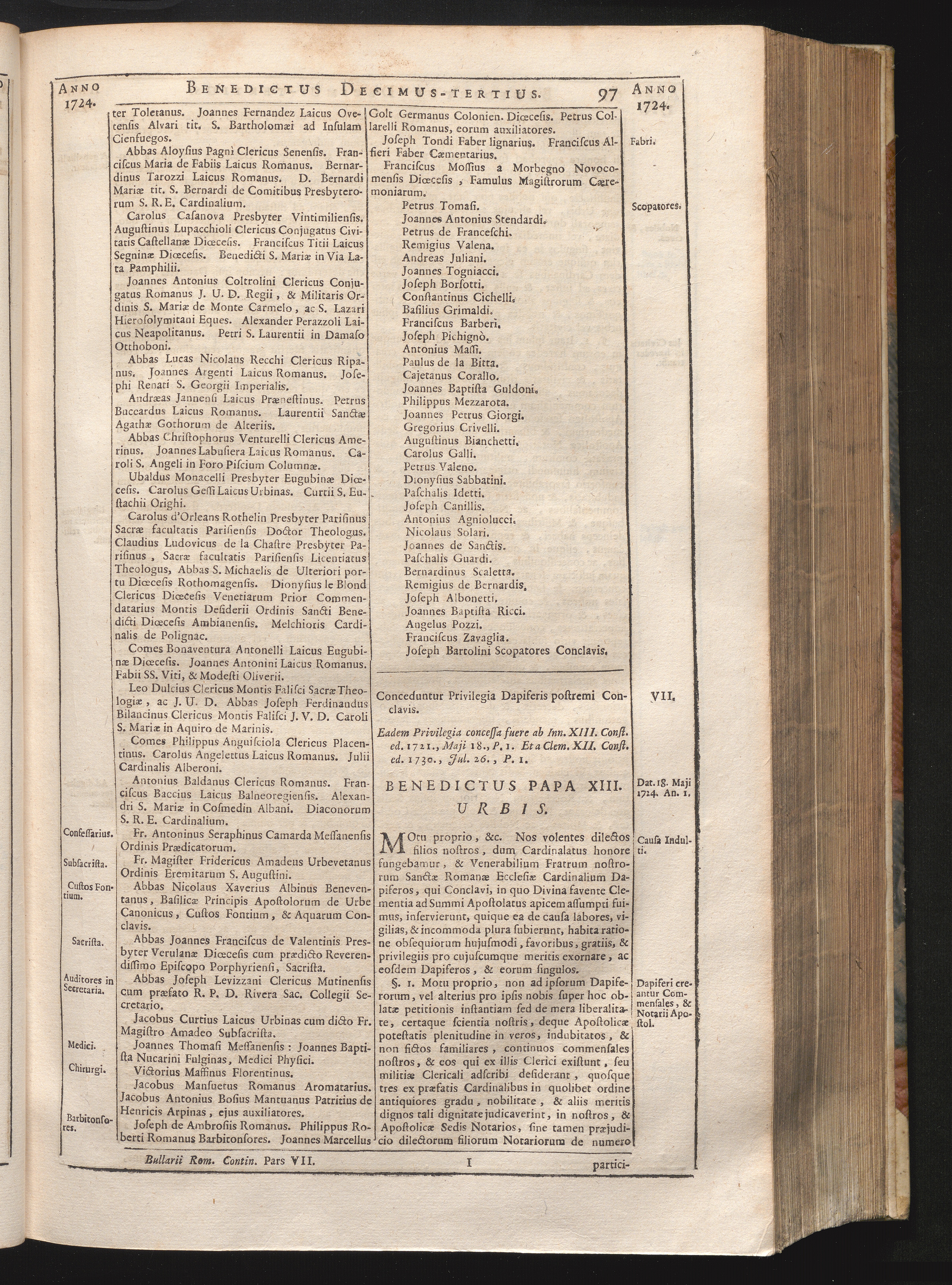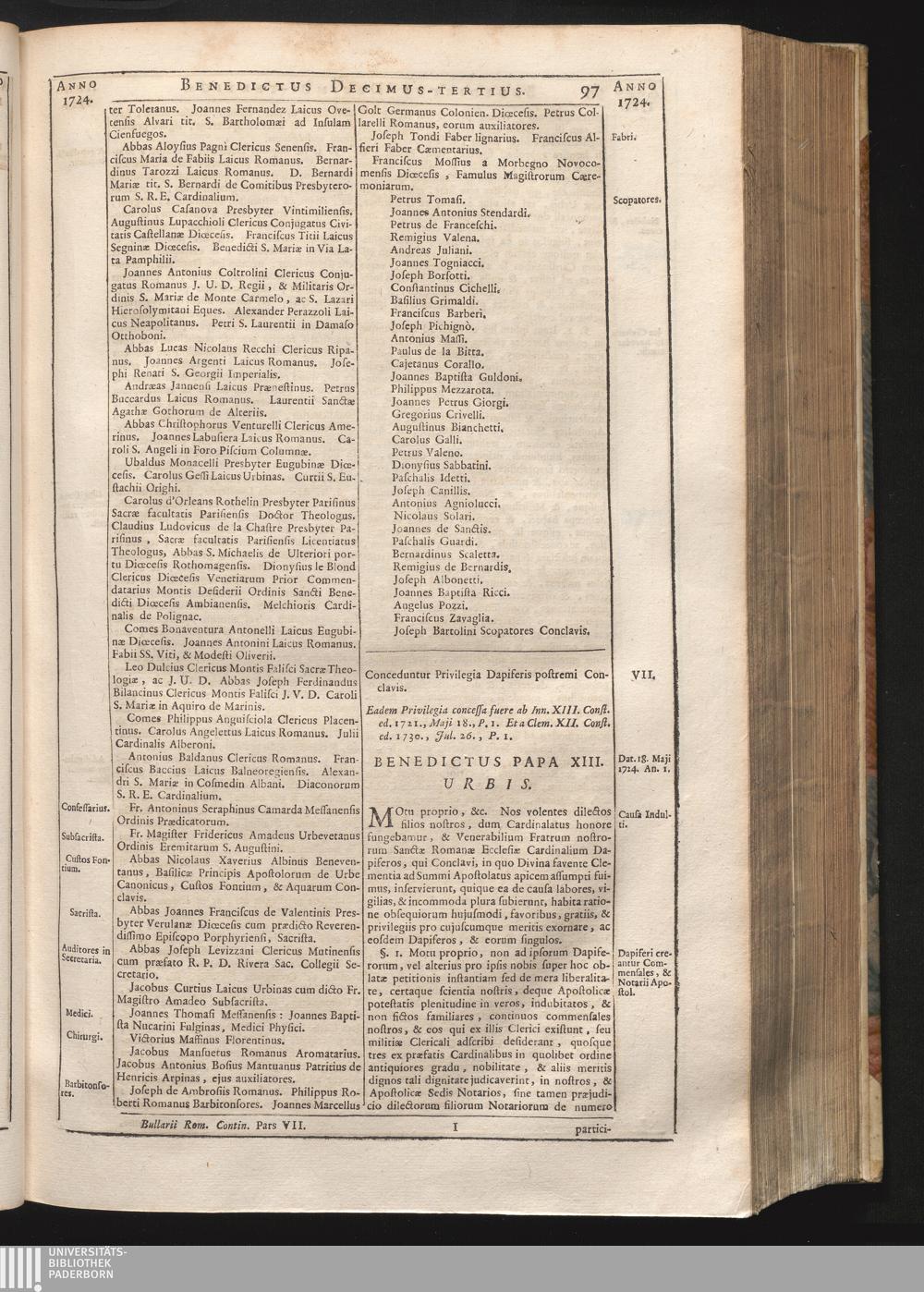 Tomus Decimus-Tertius = Continuationis Pars VII (1740) Complectens Constitutiones ab Innocentio XIII. & Benedicto XIII. editas