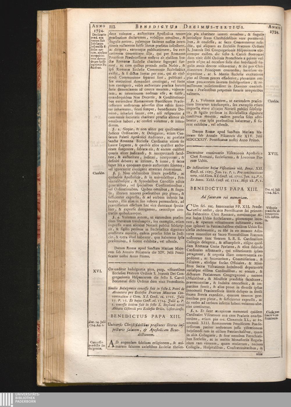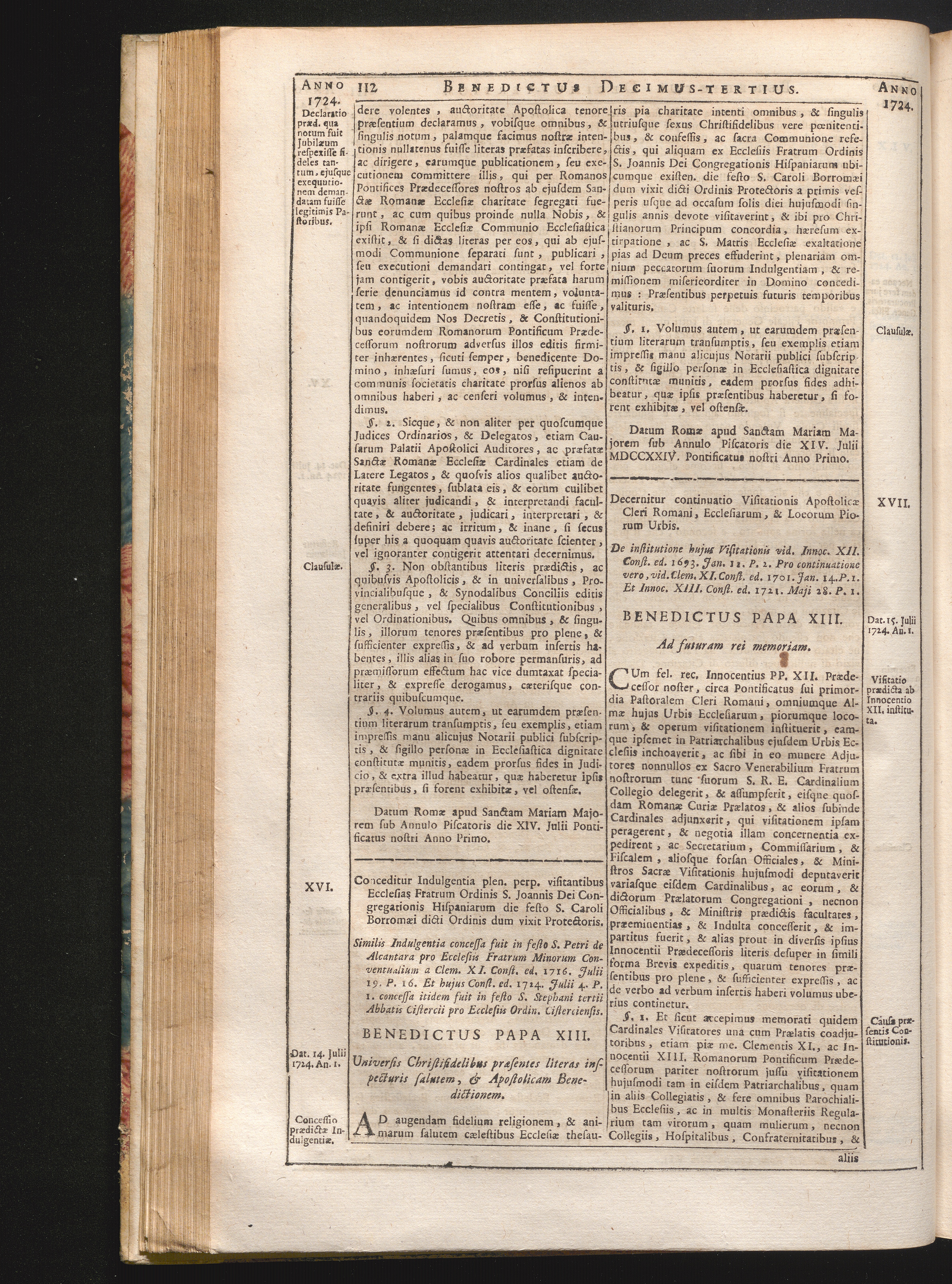 Tomus Decimus-Tertius = Continuationis Pars VII (1740) Complectens Constitutiones ab Innocentio XIII. & Benedicto XIII. editas