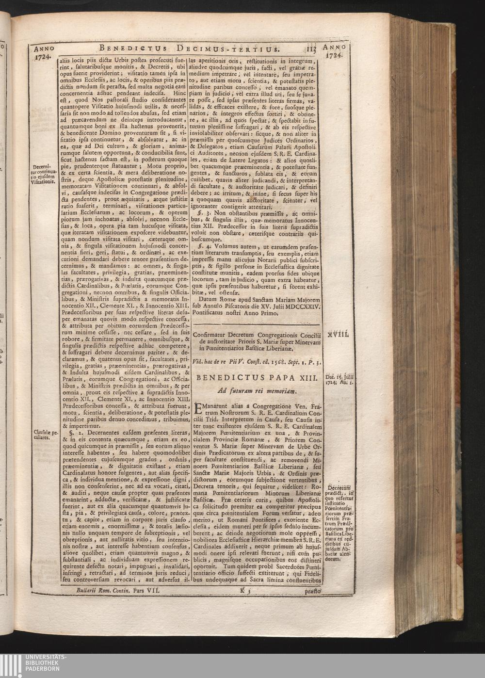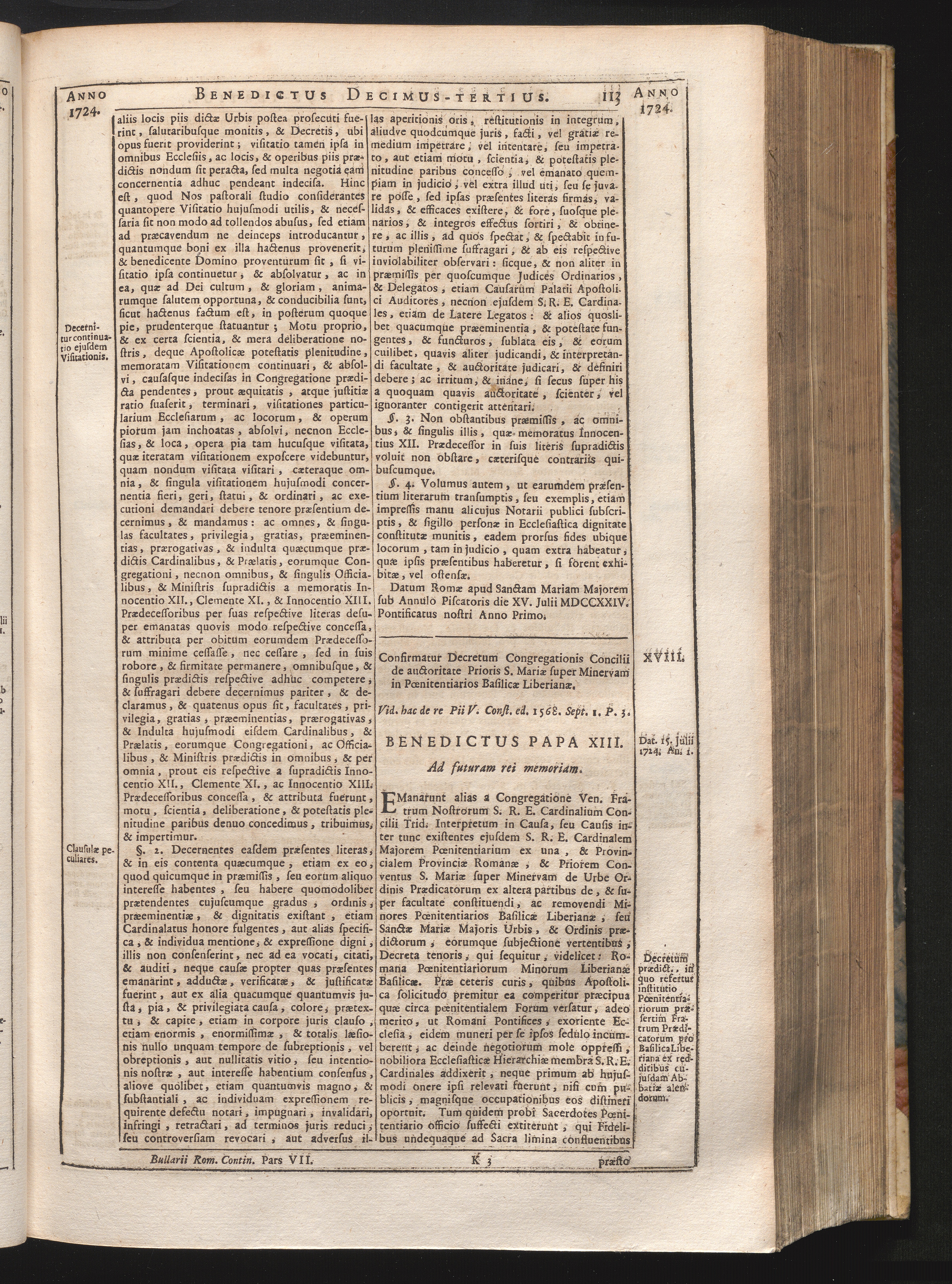 Tomus Decimus-Tertius = Continuationis Pars VII (1740) Complectens Constitutiones ab Innocentio XIII. & Benedicto XIII. editas