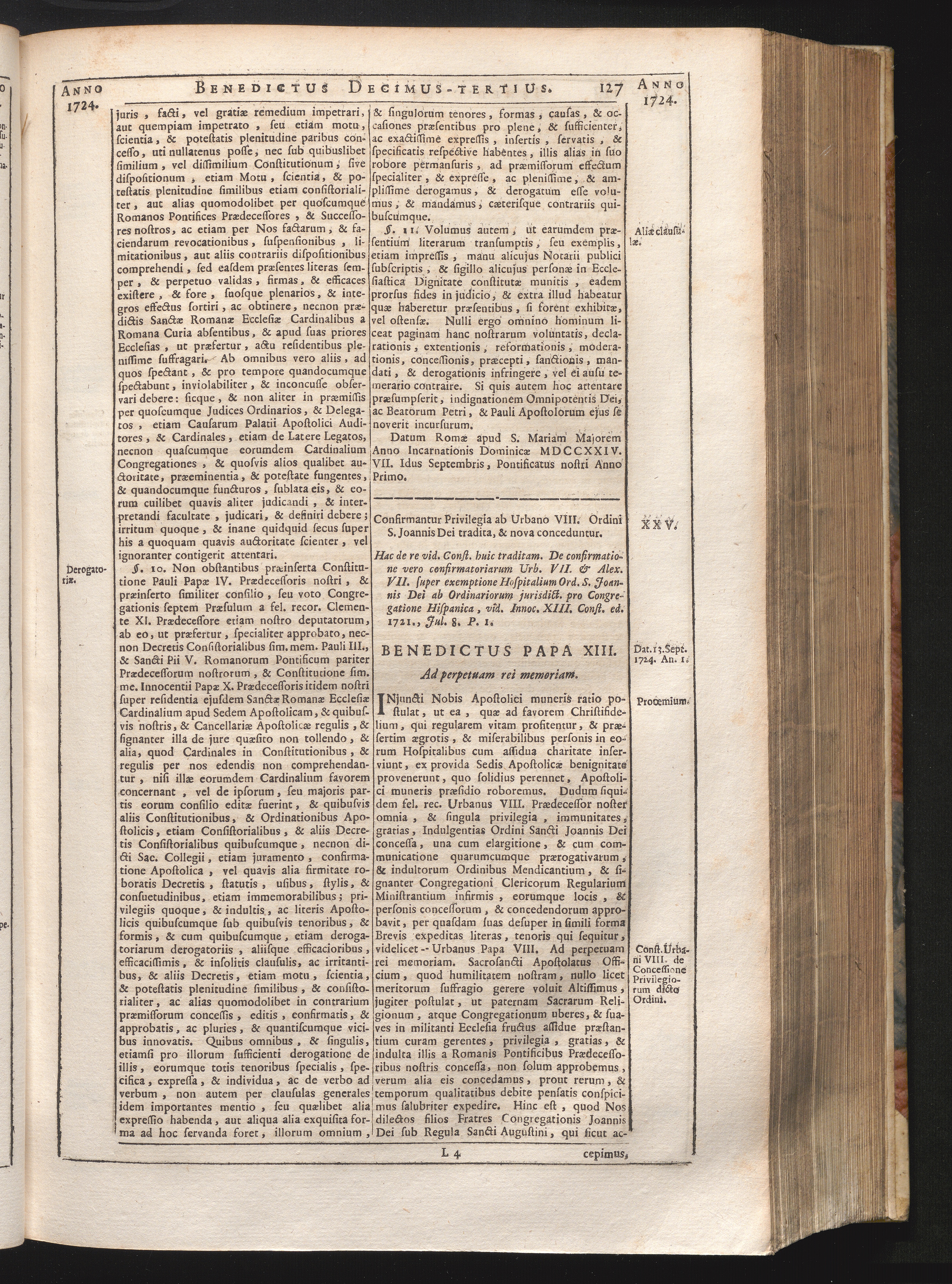 Tomus Decimus-Tertius = Continuationis Pars VII (1740) Complectens Constitutiones ab Innocentio XIII. & Benedicto XIII. editas