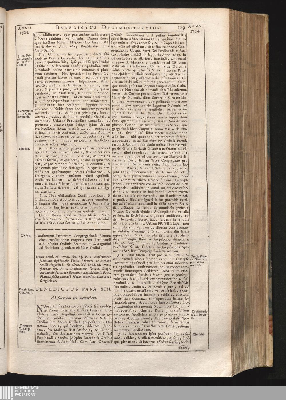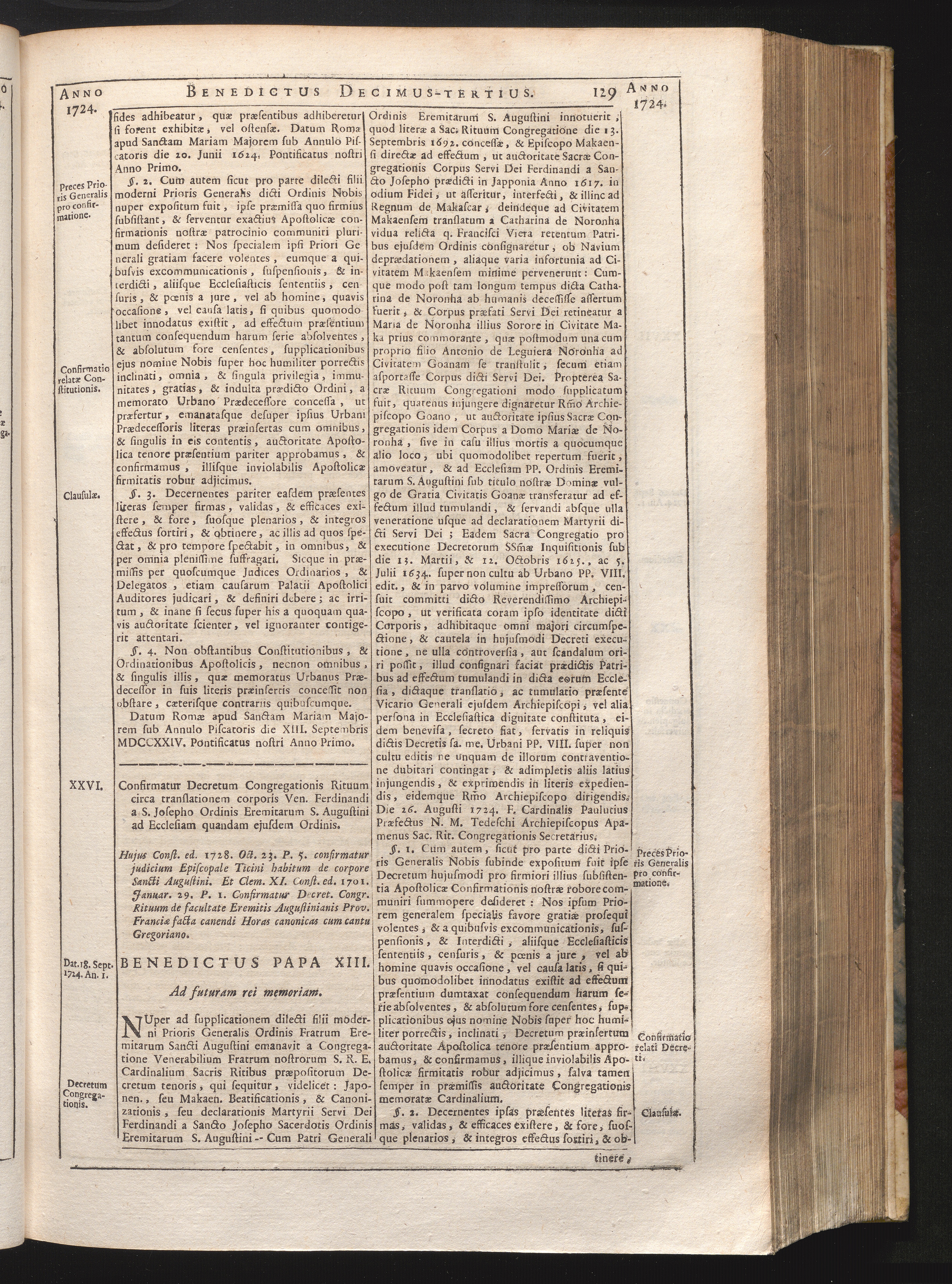 XXVI. Decretum Translationis Corporis Ven. Ferdinandi a S. Josepho Ord. Eremitarum[...]