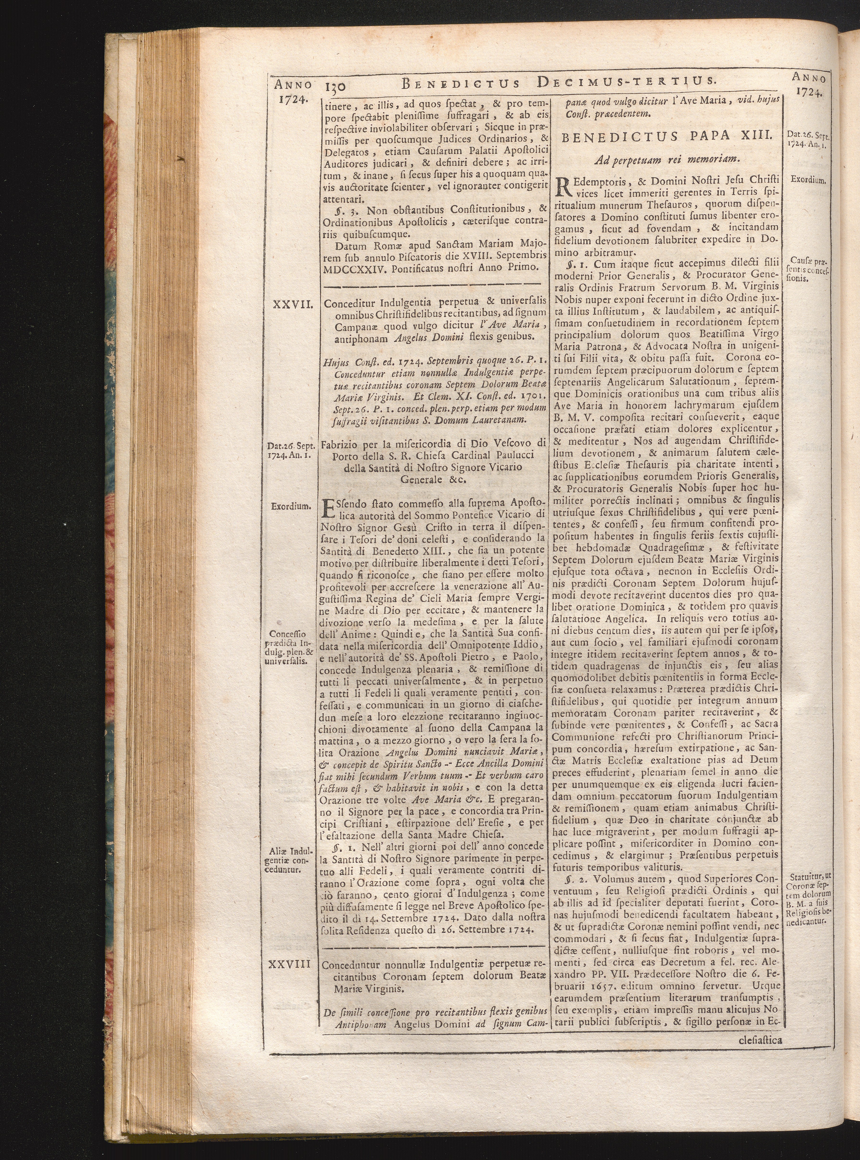 Tomus Decimus-Tertius = Continuationis Pars VII (1740) Complectens Constitutiones ab Innocentio XIII. & Benedicto XIII. editas