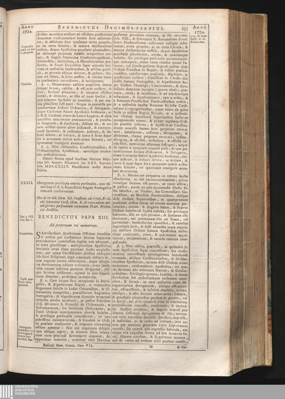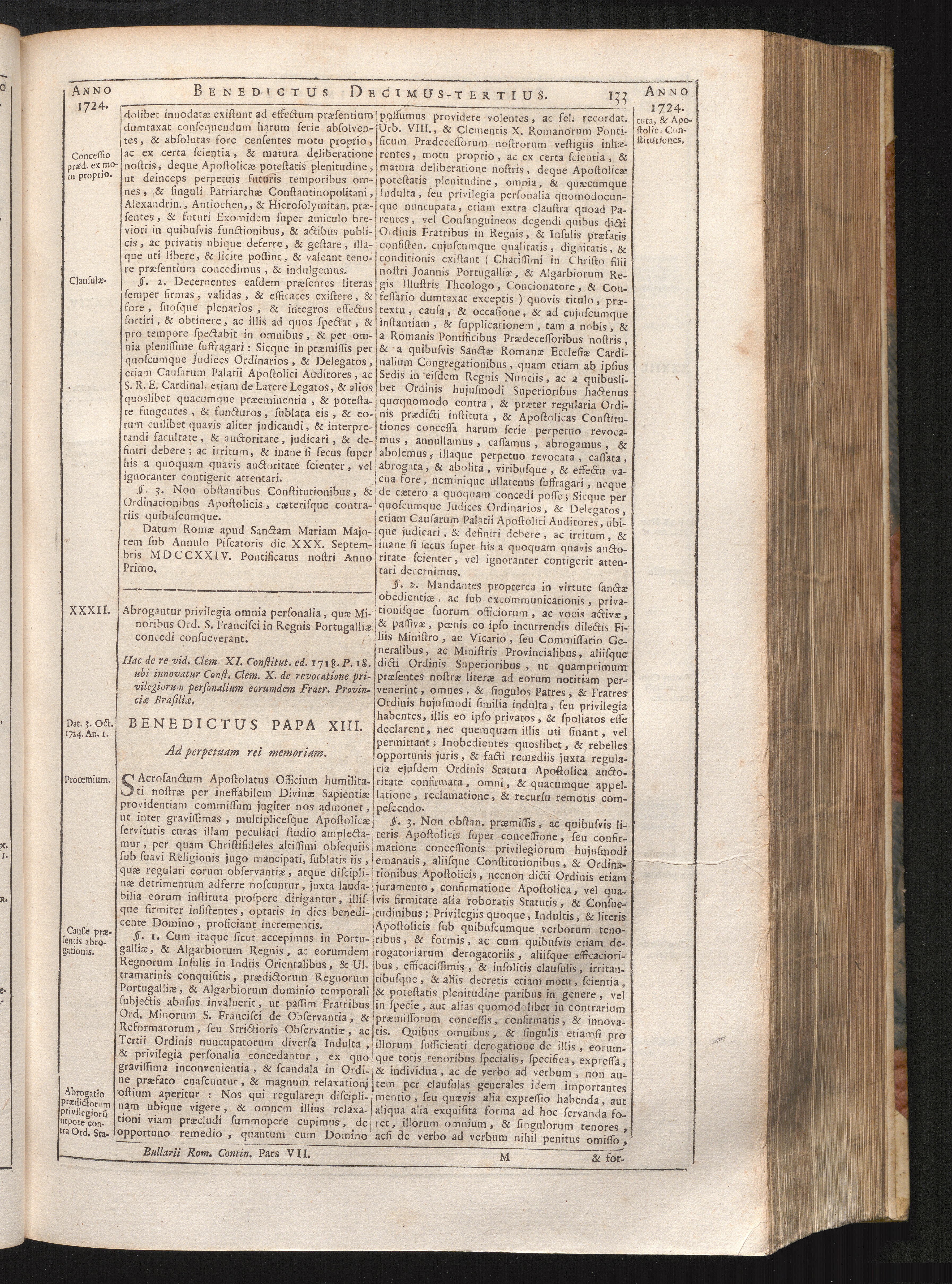 Tomus Decimus-Tertius = Continuationis Pars VII (1740) Complectens Constitutiones ab Innocentio XIII. & Benedicto XIII. editas