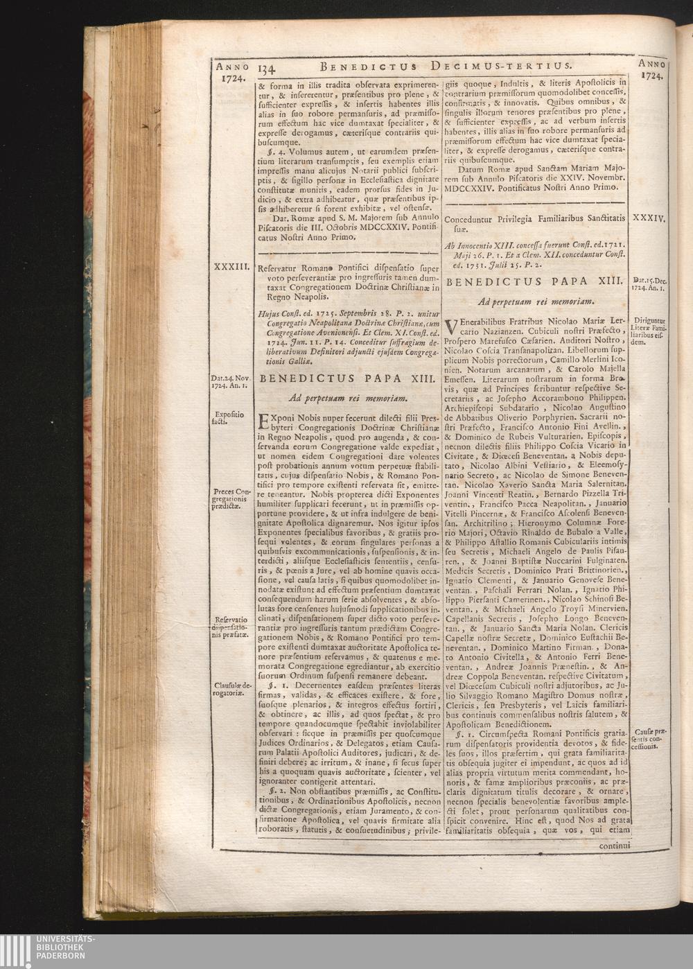 Tomus Decimus-Tertius = Continuationis Pars VII (1740) Complectens Constitutiones ab Innocentio XIII. & Benedicto XIII. editas