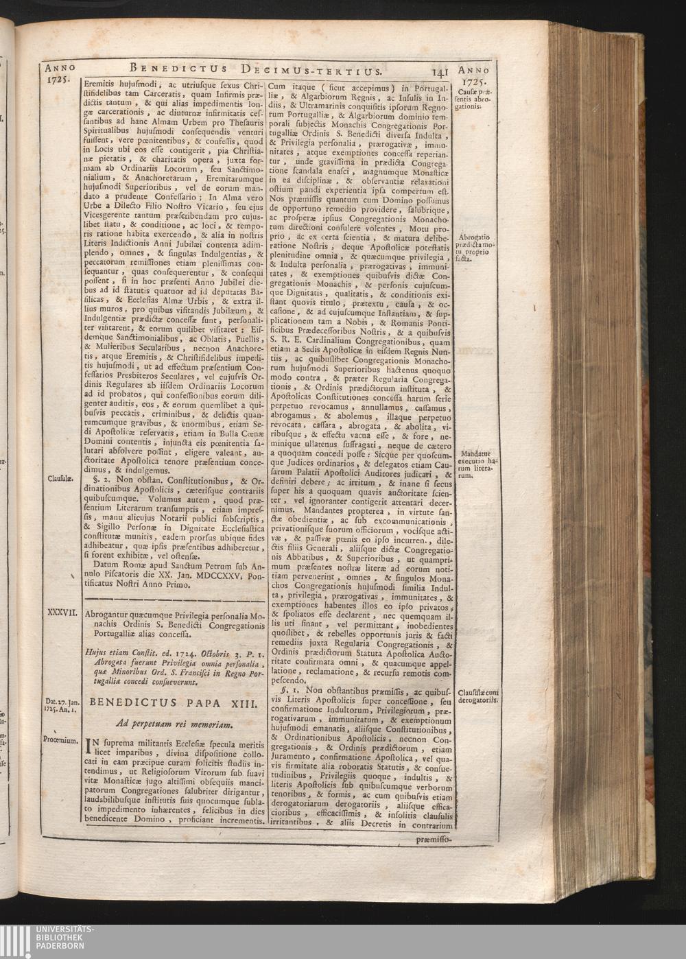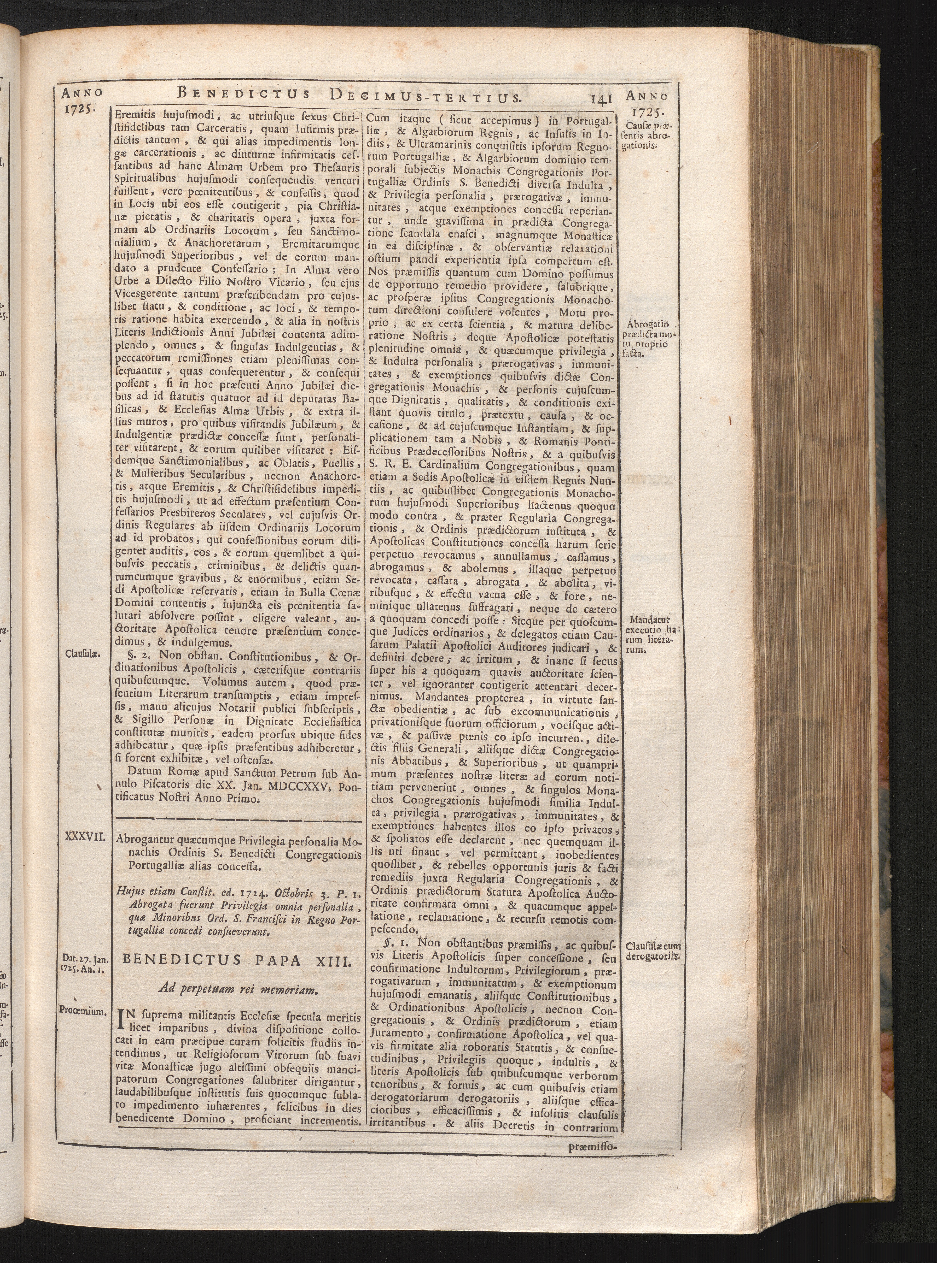 XXXVII. Abrogatio privilegiorum personalium Monachorum S. Benedicti Congregationis[...]
