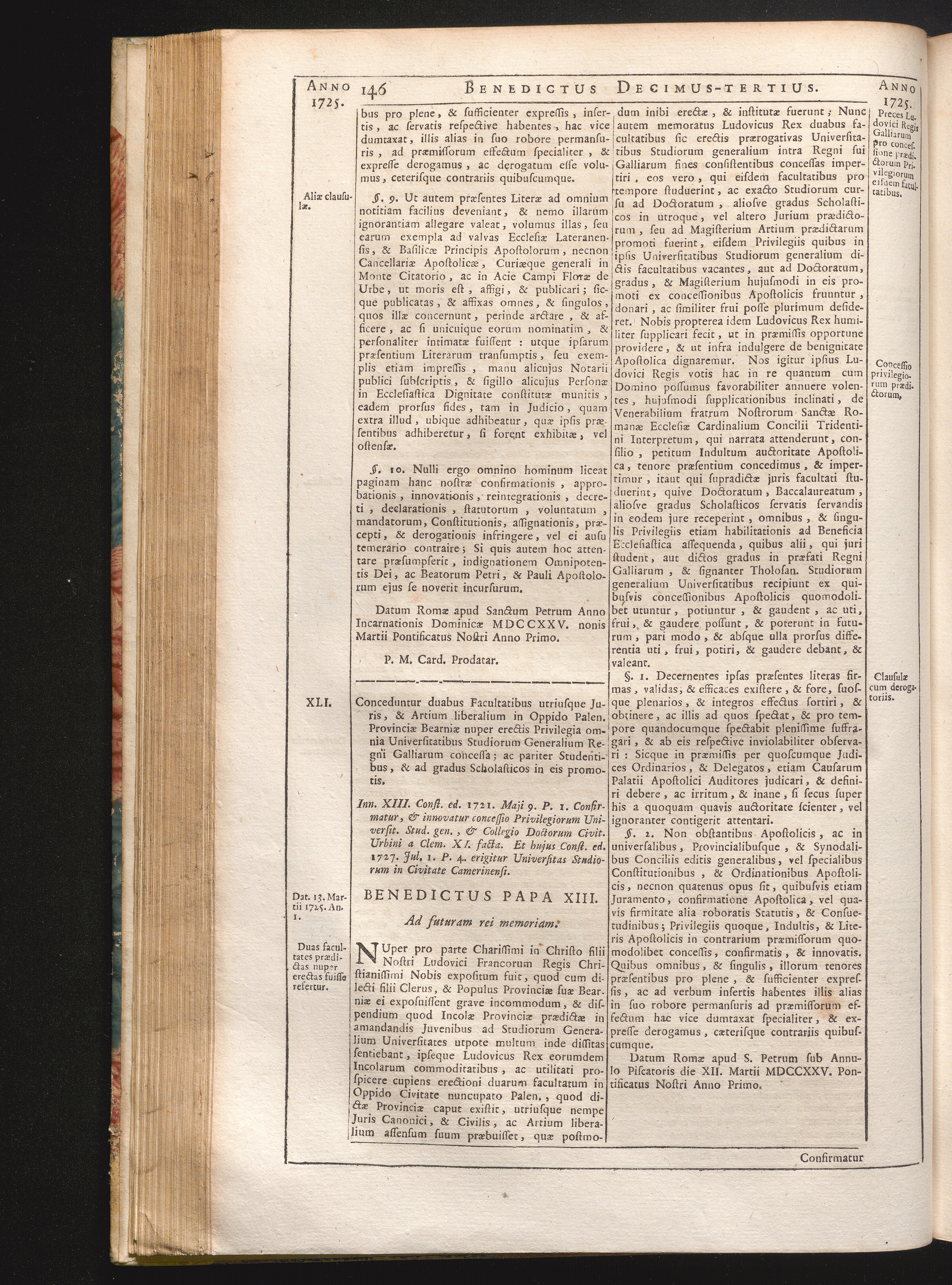XLI. Concessio Privilegiorum omnium Universitatum Regni Galliarum pro duabus Facultatibus[...]