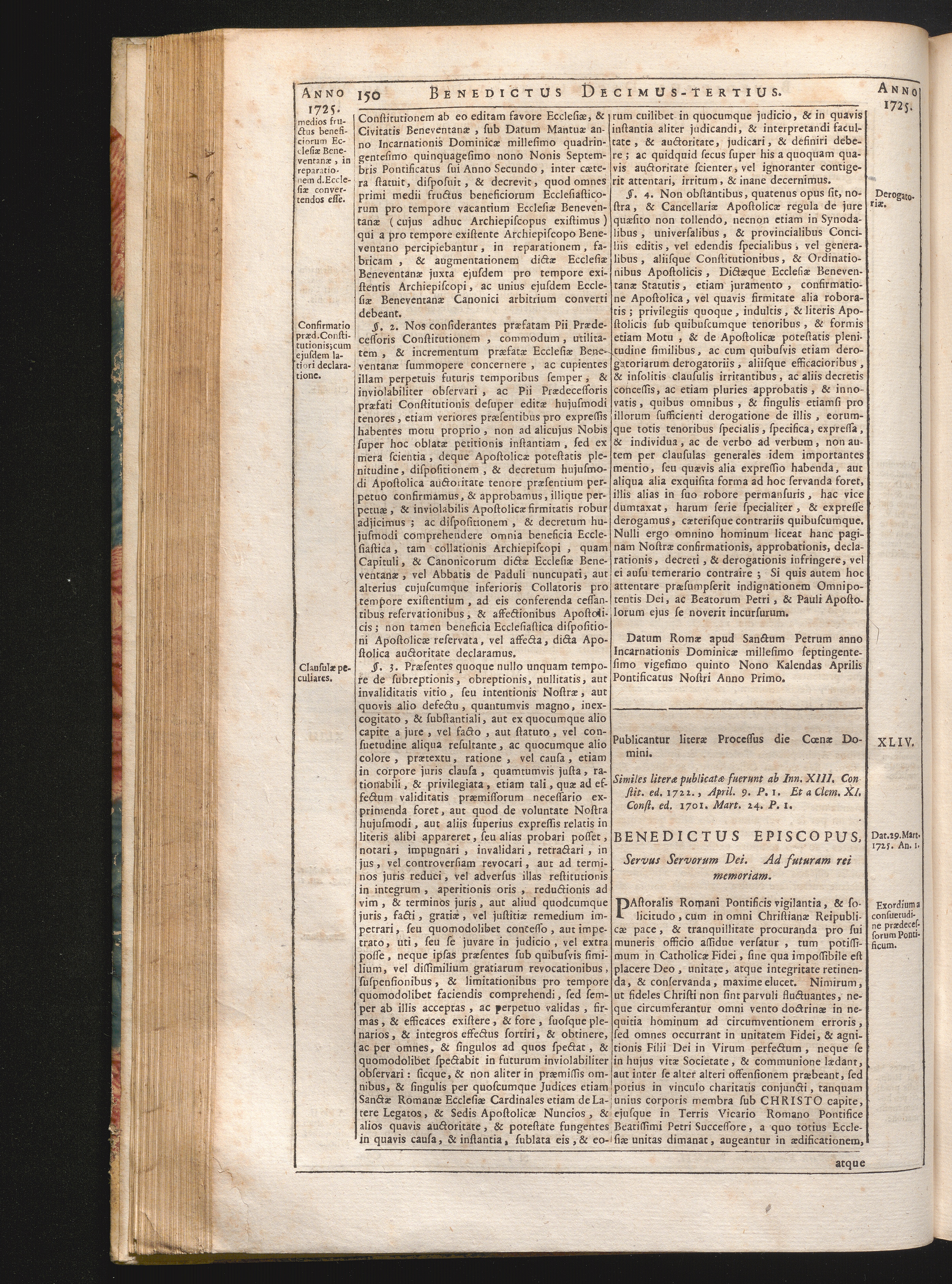 Tomus Decimus-Tertius = Continuationis Pars VII (1740) Complectens Constitutiones ab Innocentio XIII. & Benedicto XIII. editas