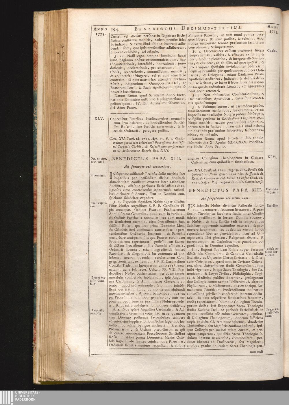 Tomus Decimus-Tertius = Continuationis Pars VII (1740) Complectens Constitutiones ab Innocentio XIII. & Benedicto XIII. editas