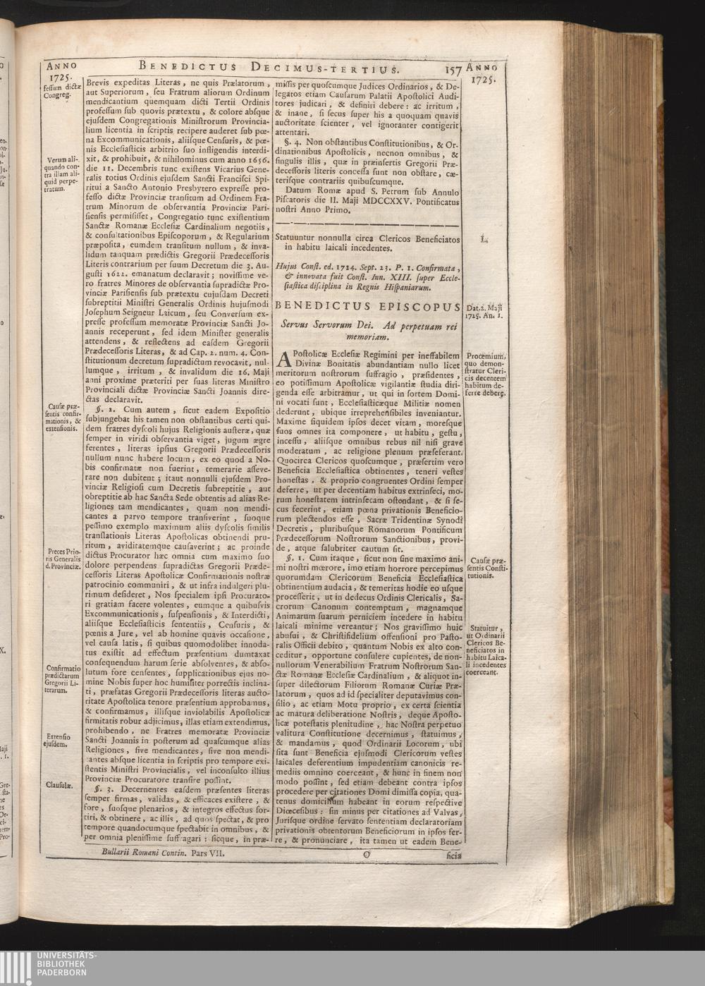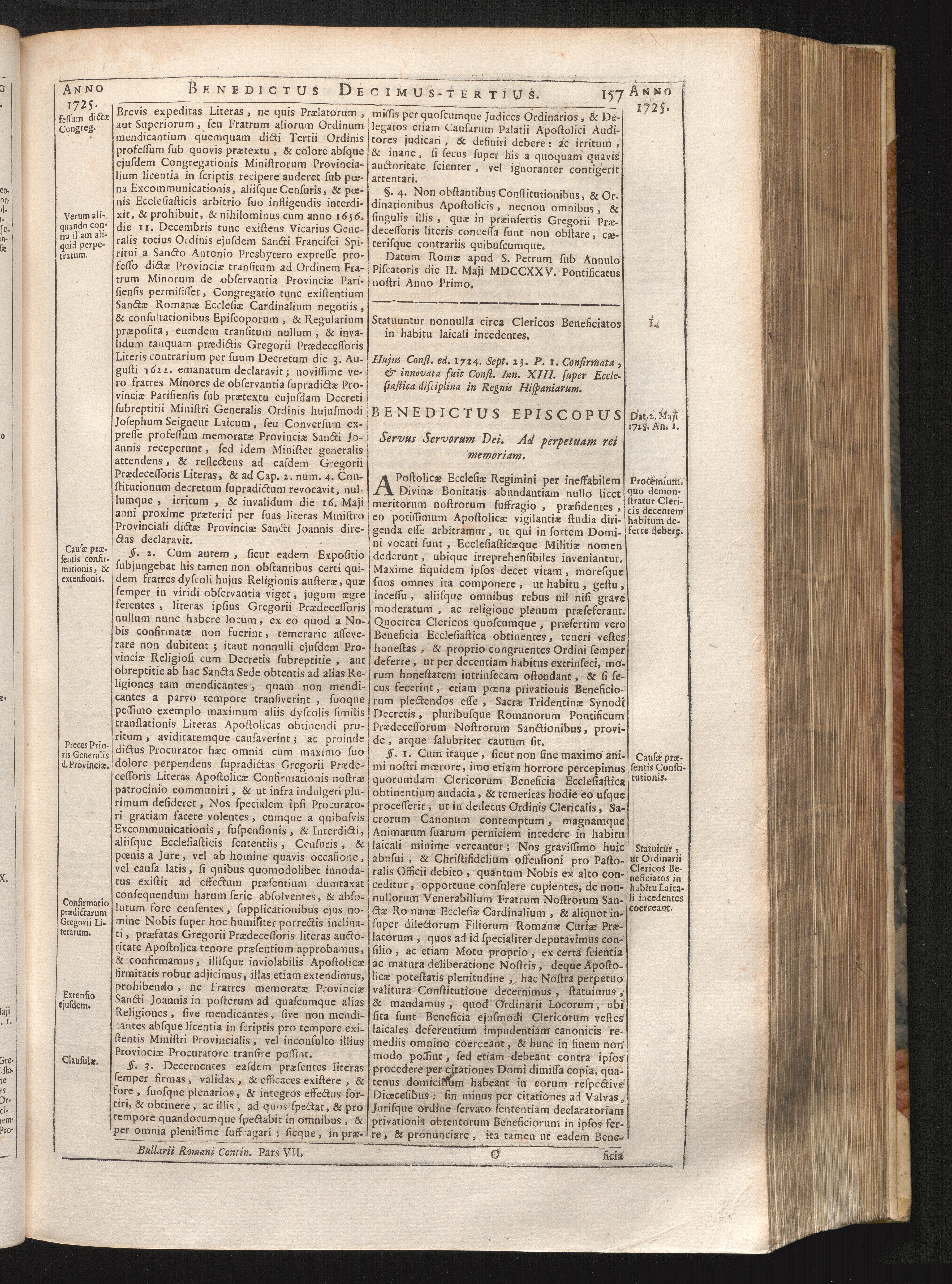 Tomus Decimus-Tertius = Continuationis Pars VII (1740) Complectens Constitutiones ab Innocentio XIII. & Benedicto XIII. editas