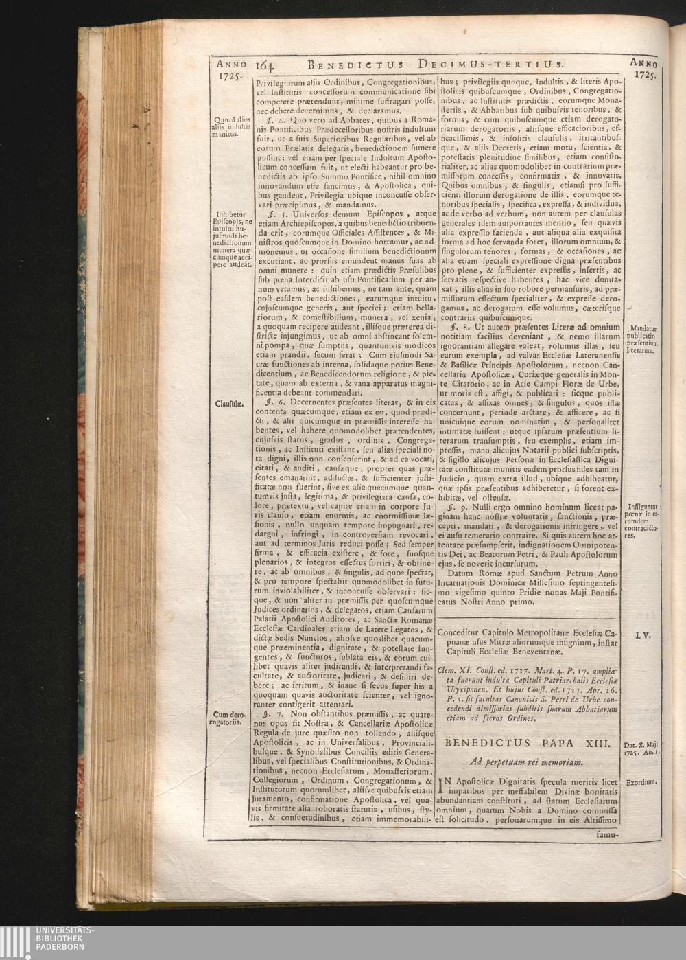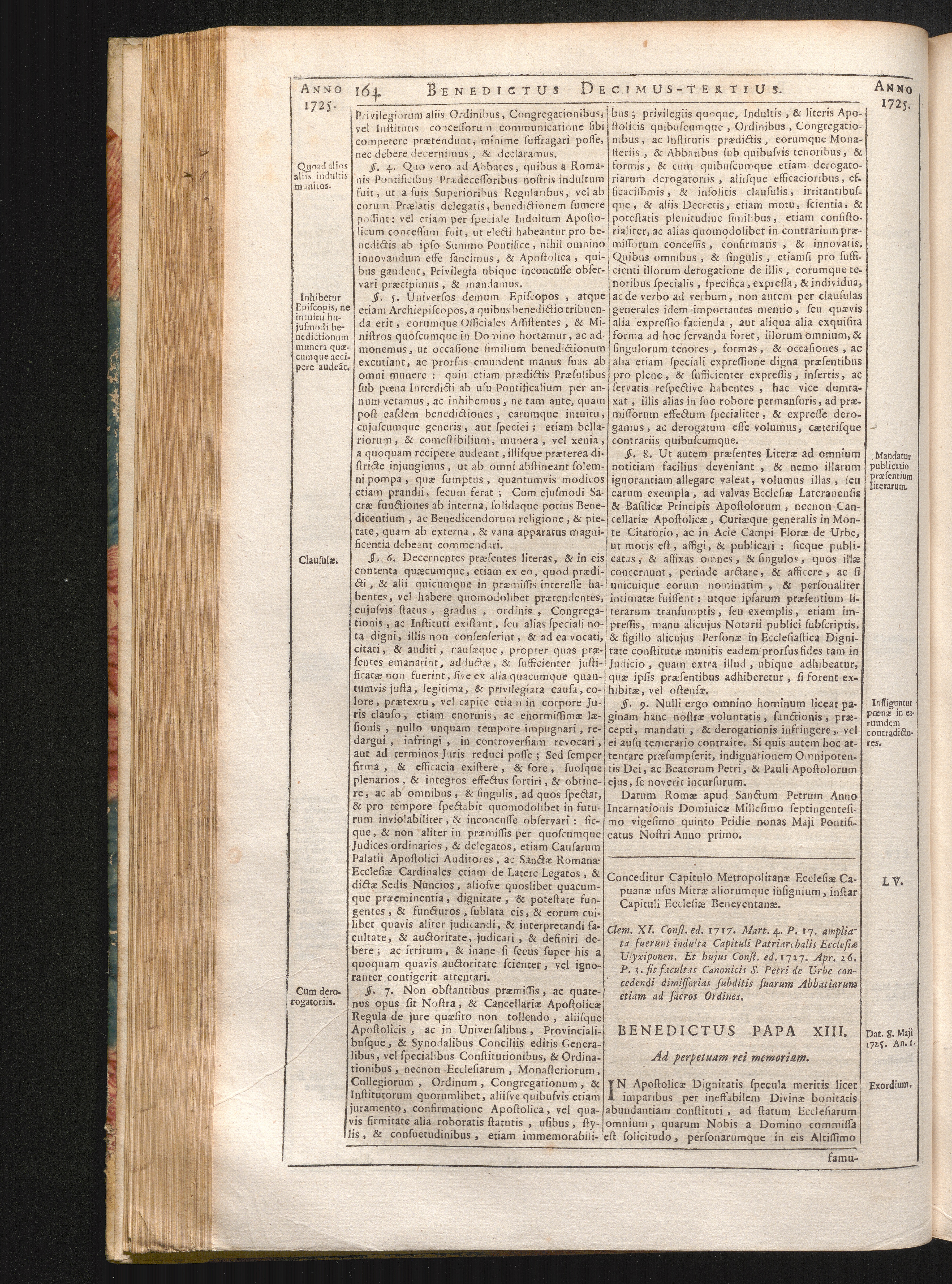 Tomus Decimus-Tertius = Continuationis Pars VII (1740) Complectens Constitutiones ab Innocentio XIII. & Benedicto XIII. editas