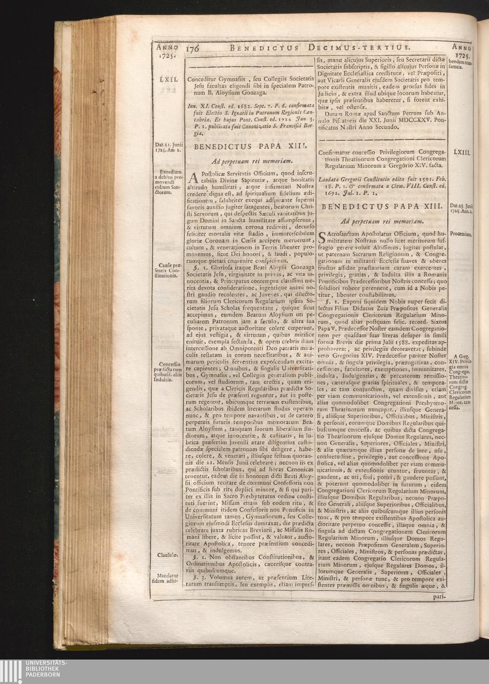 Tomus Decimus-Tertius = Continuationis Pars VII (1740) Complectens Constitutiones ab Innocentio XIII. & Benedicto XIII. editas