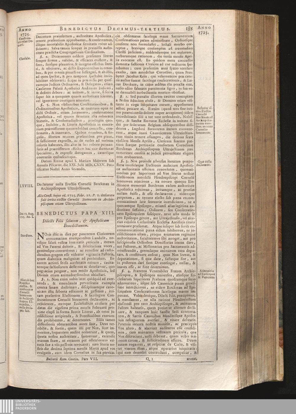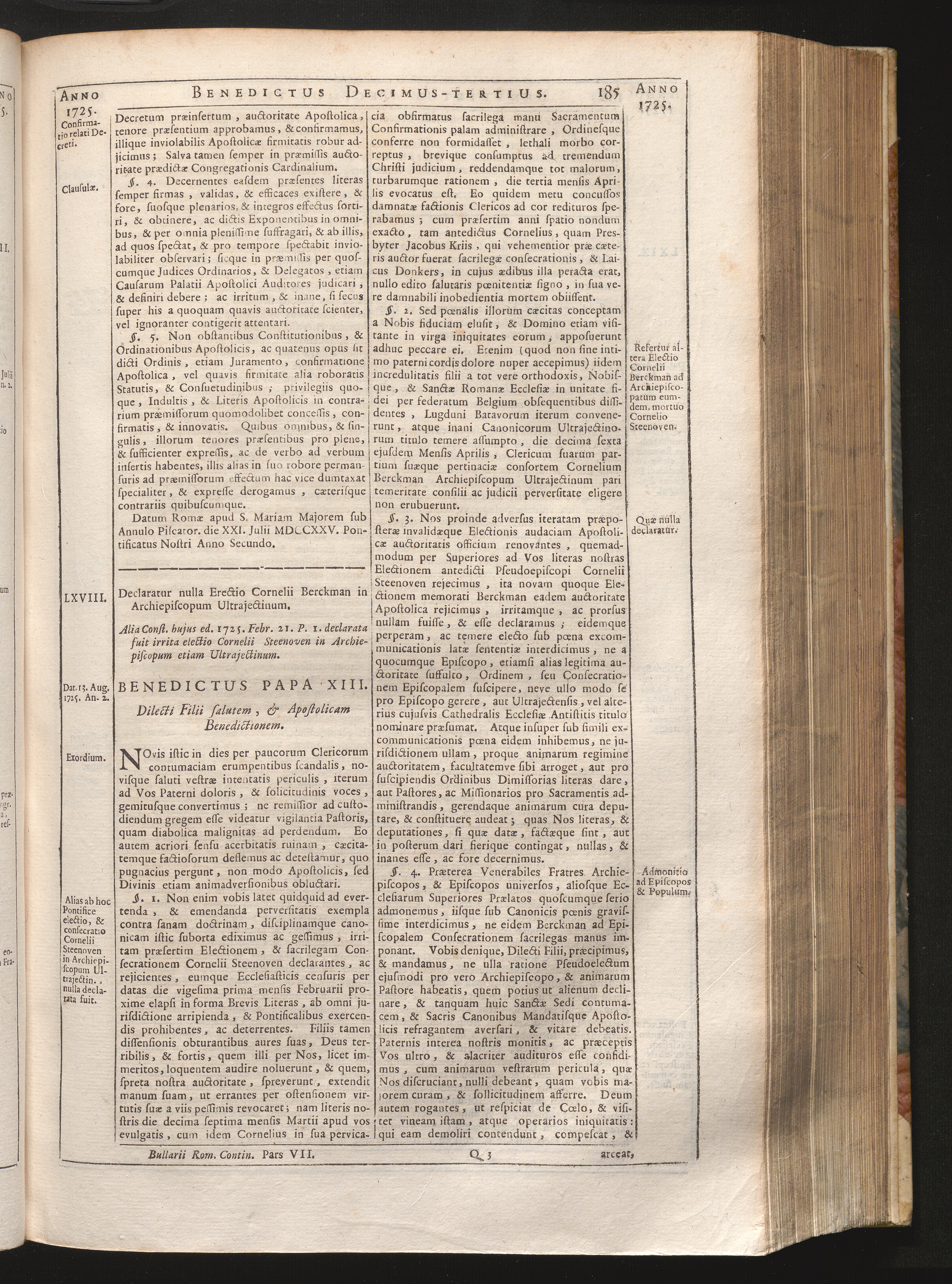 Tomus Decimus-Tertius = Continuationis Pars VII (1740) Complectens Constitutiones ab Innocentio XIII. & Benedicto XIII. editas