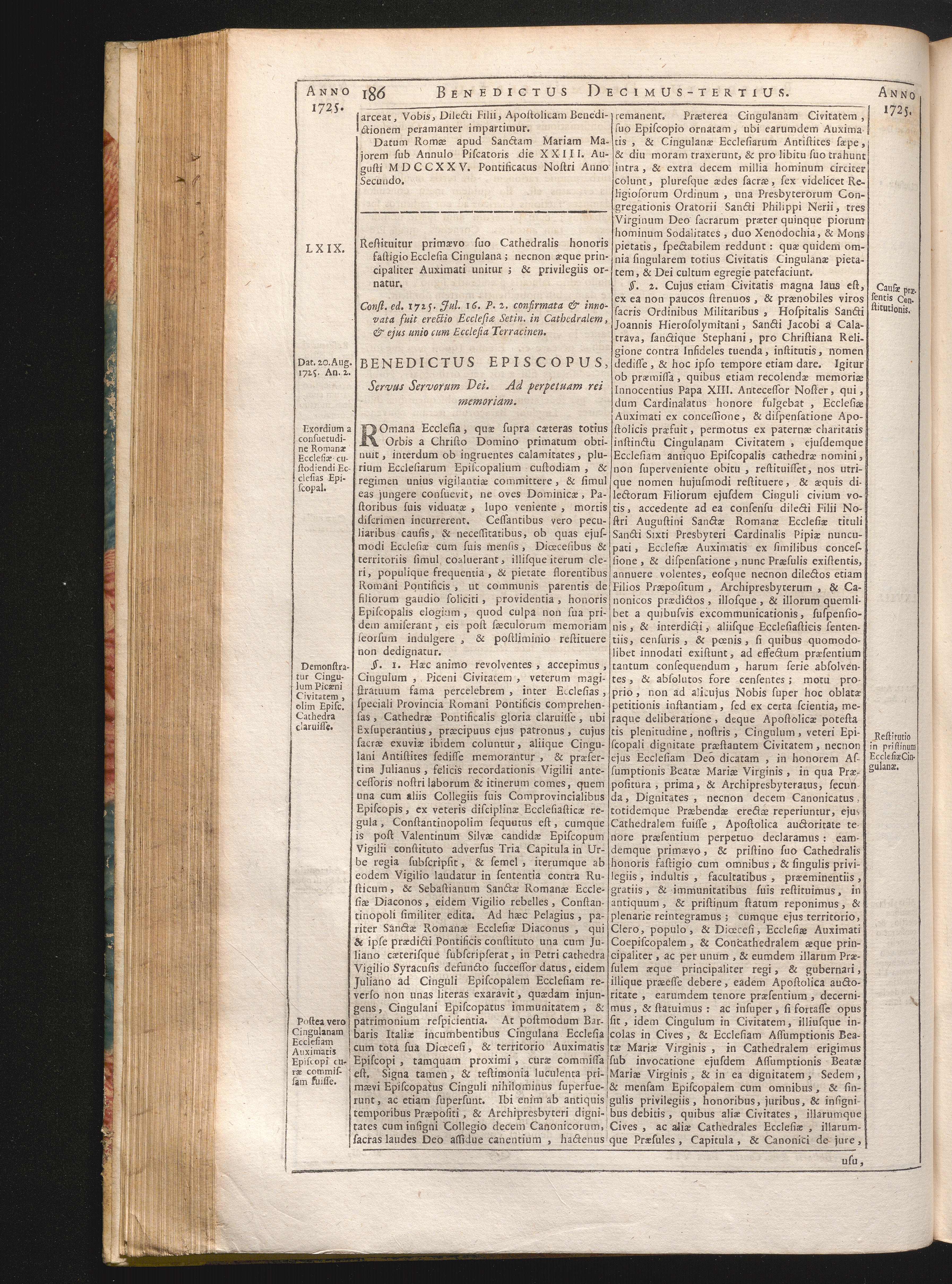 LXIX. De Cathedrali Ecclesia Cingulana.