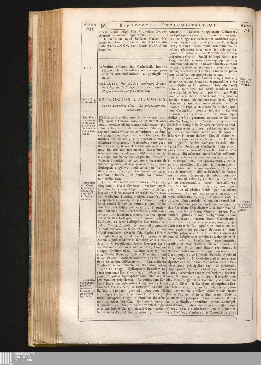 Tomus Decimus-Tertius = Continuationis Pars VII (1740) Complectens Constitutiones ab Innocentio XIII. & Benedicto XIII. editas