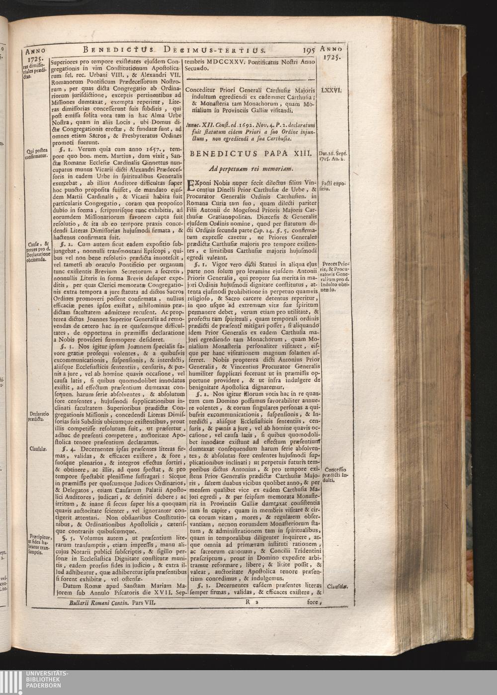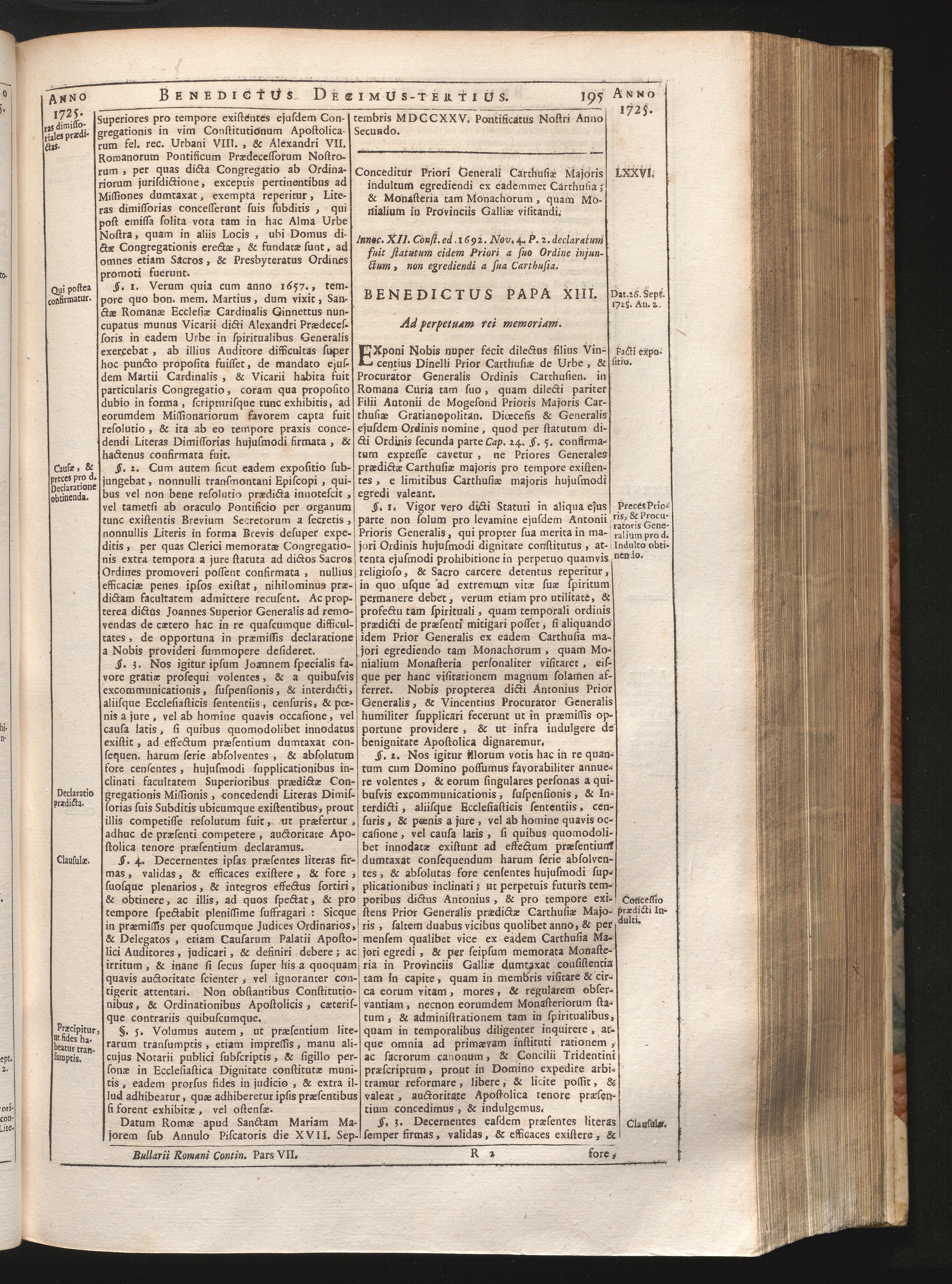 Tomus Decimus-Tertius = Continuationis Pars VII (1740) Complectens Constitutiones ab Innocentio XIII. & Benedicto XIII. editas