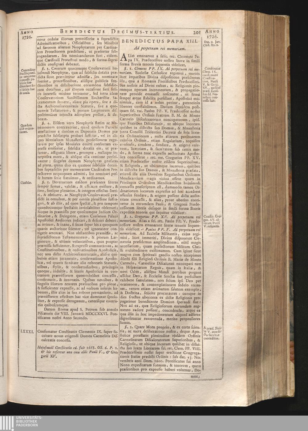 Tomus Decimus-Tertius = Continuationis Pars VII (1740) Complectens Constitutiones ab Innocentio XIII. & Benedicto XIII. editas