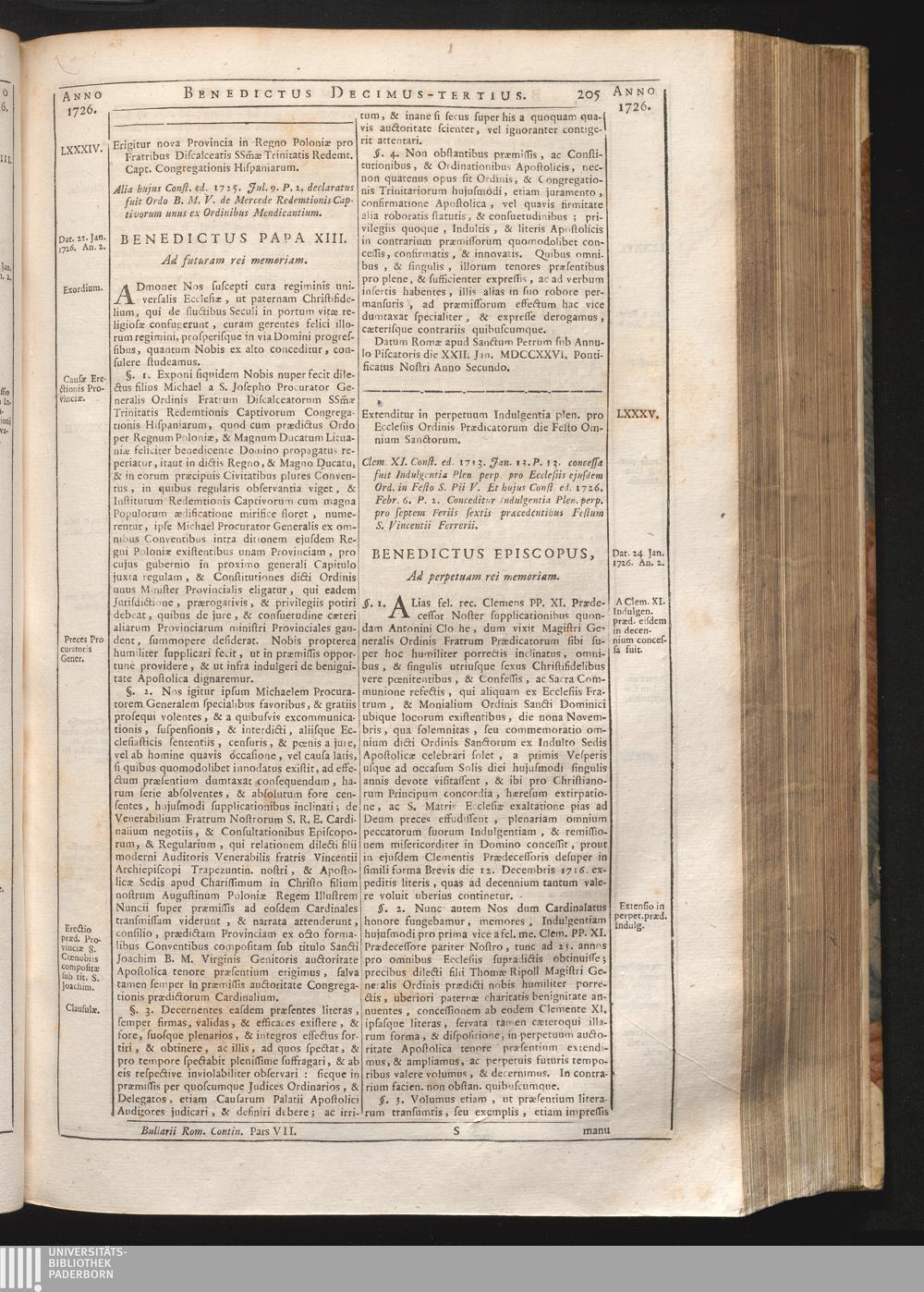 Tomus Decimus-Tertius = Continuationis Pars VII (1740) Complectens Constitutiones ab Innocentio XIII. & Benedicto XIII. editas