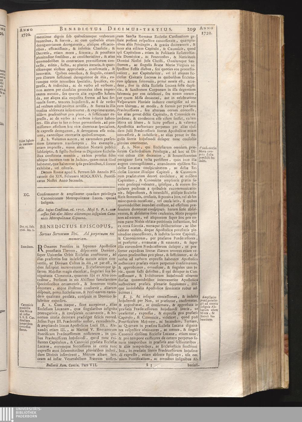 Tomus Decimus-Tertius = Continuationis Pars VII (1740) Complectens Constitutiones ab Innocentio XIII. & Benedicto XIII. editas