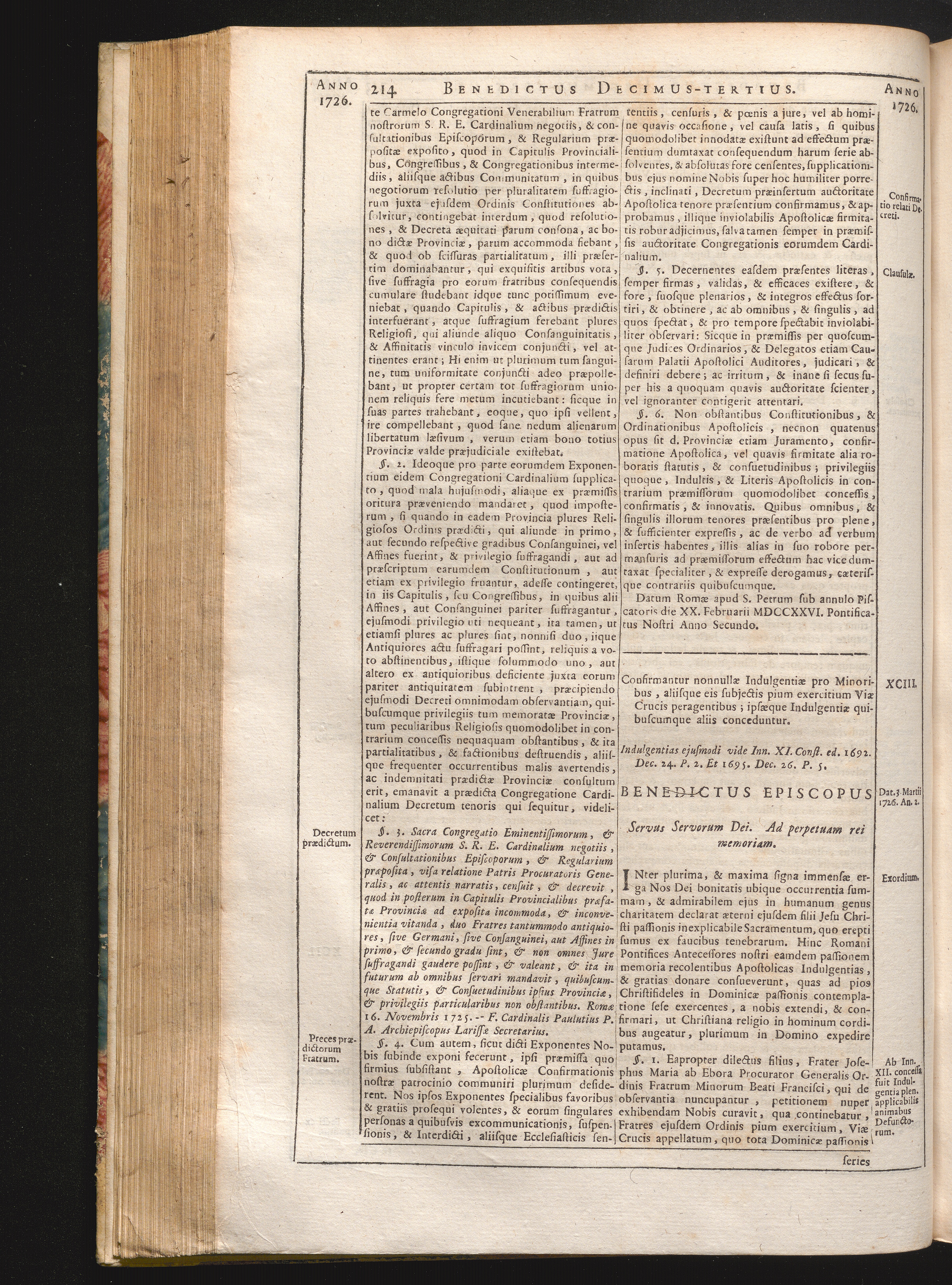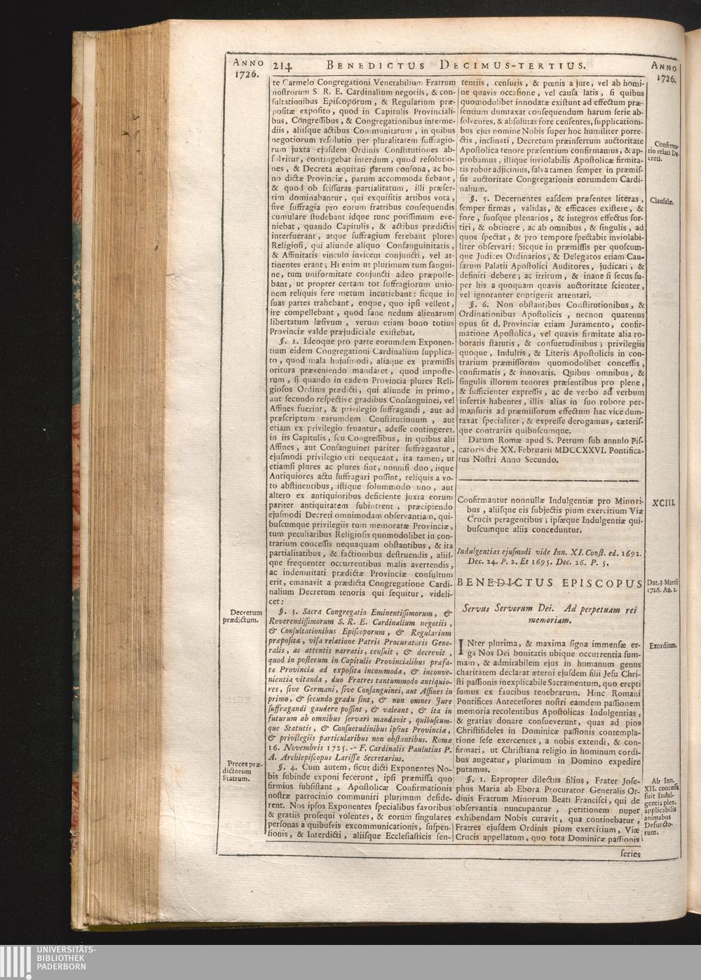 Tomus Decimus-Tertius = Continuationis Pars VII (1740) Complectens Constitutiones ab Innocentio XIII. & Benedicto XIII. editas