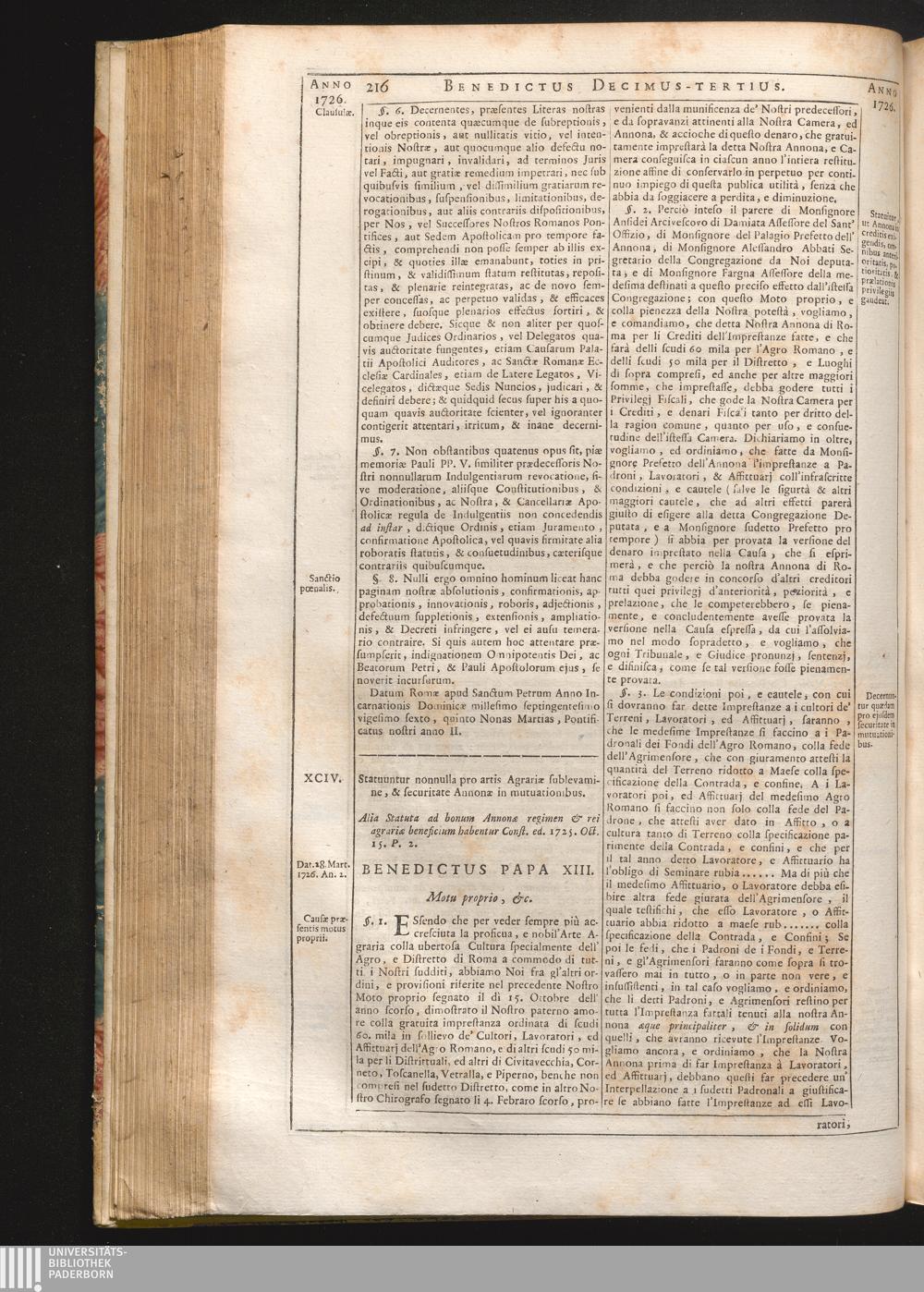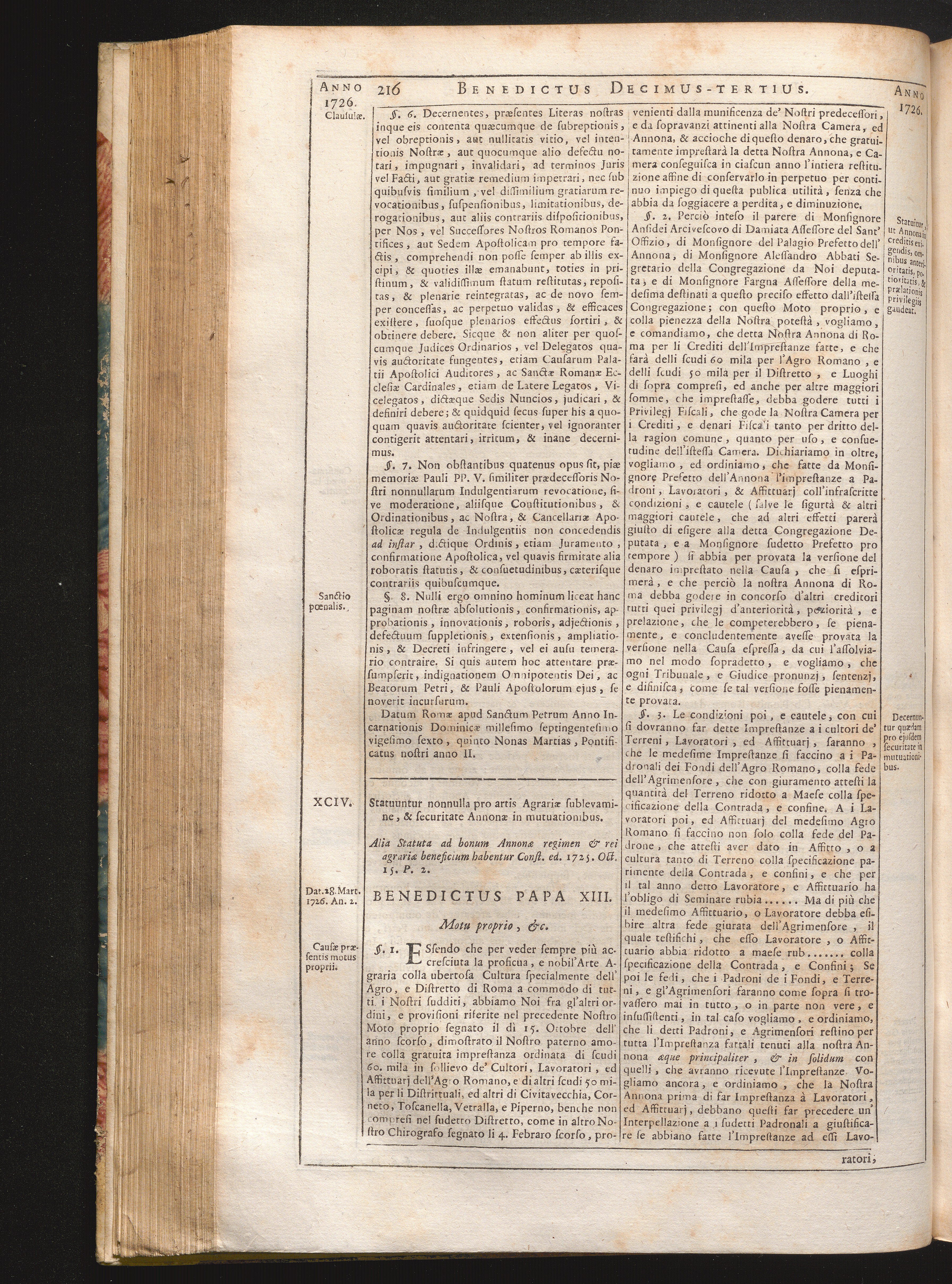 XCIV. Statuta pro Artis agrariæ sublevamine, & securitate Annonæ in mutationibus[...]