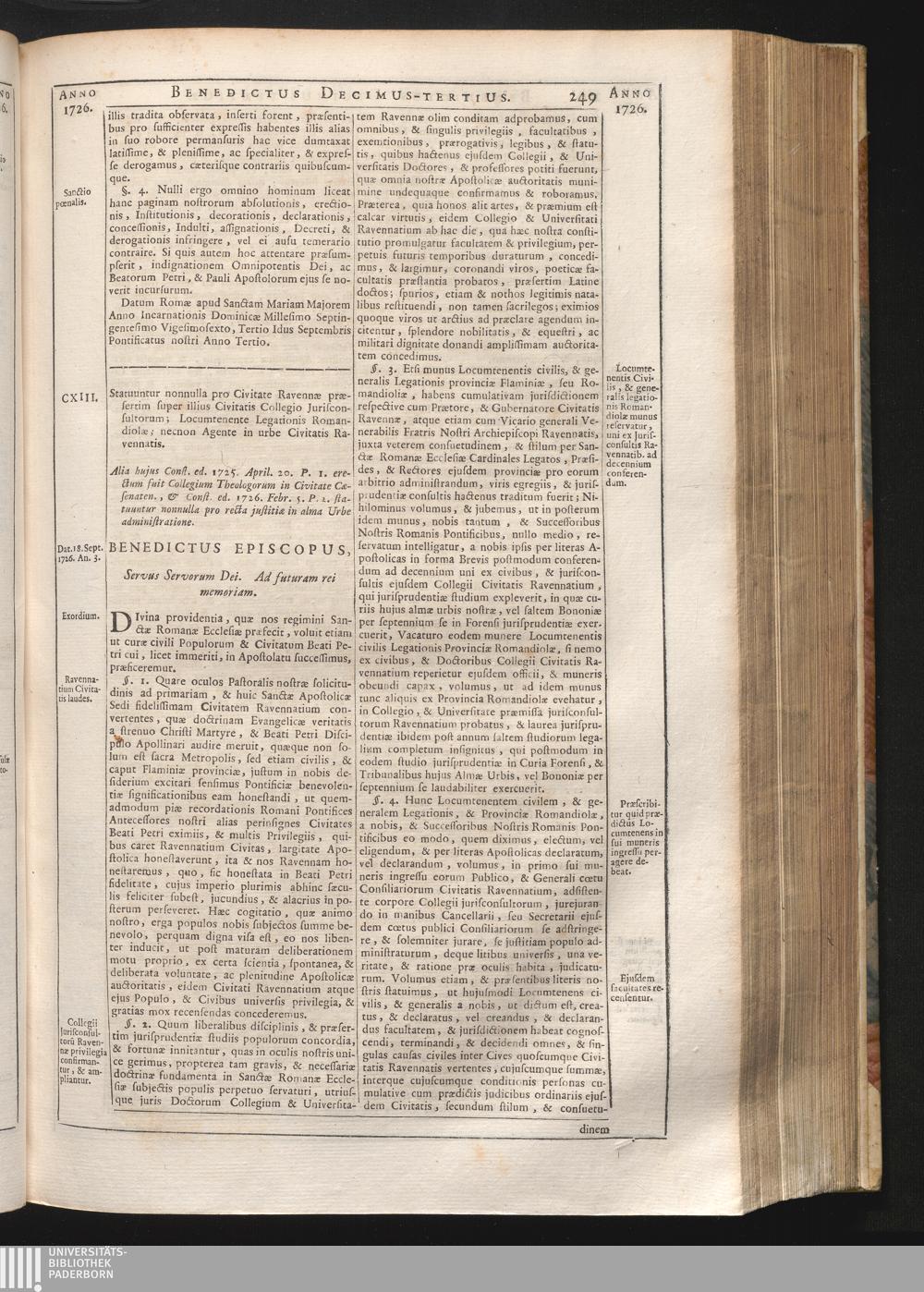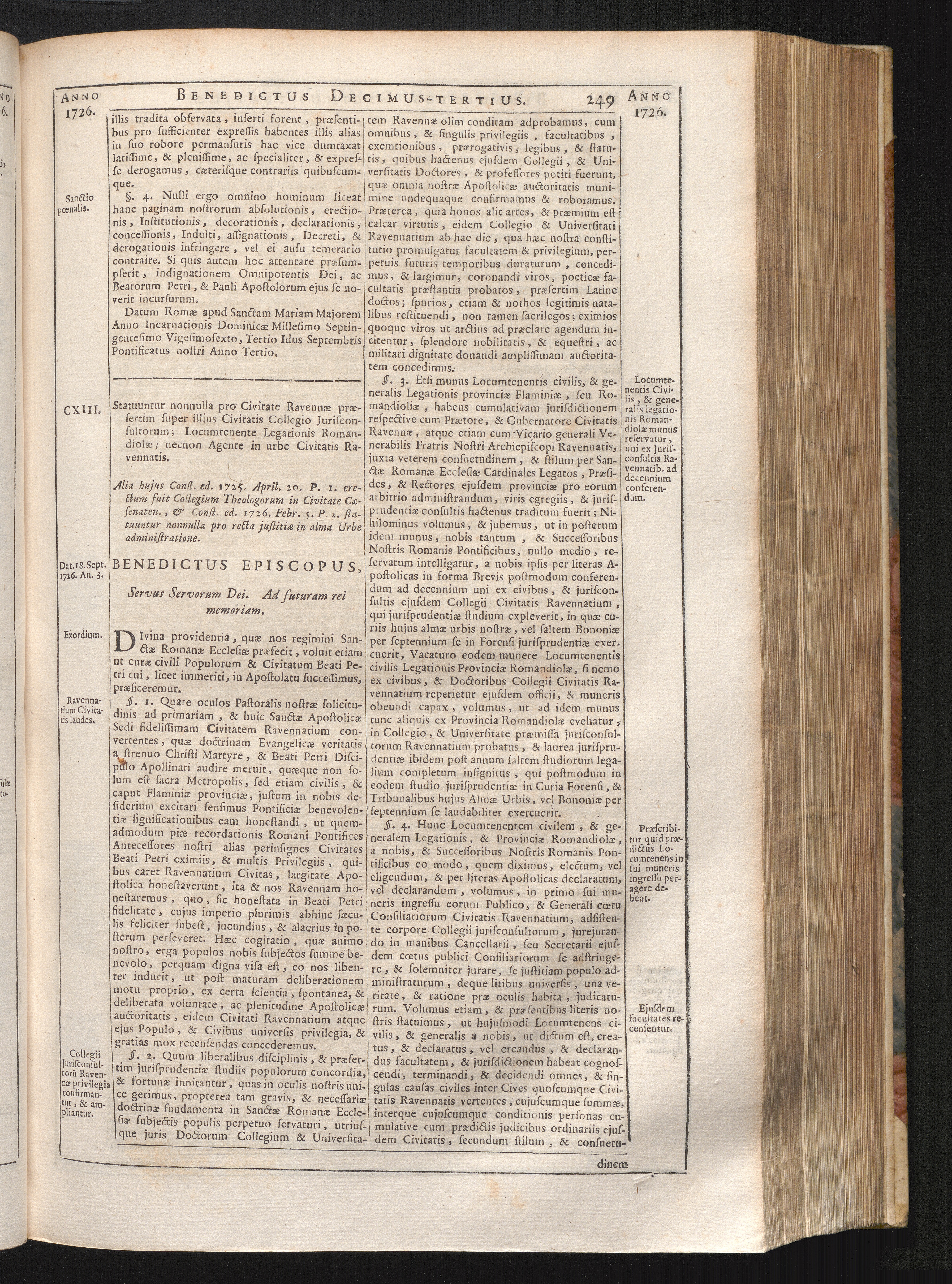 Tomus Decimus-Tertius = Continuationis Pars VII (1740) Complectens Constitutiones ab Innocentio XIII. & Benedicto XIII. editas