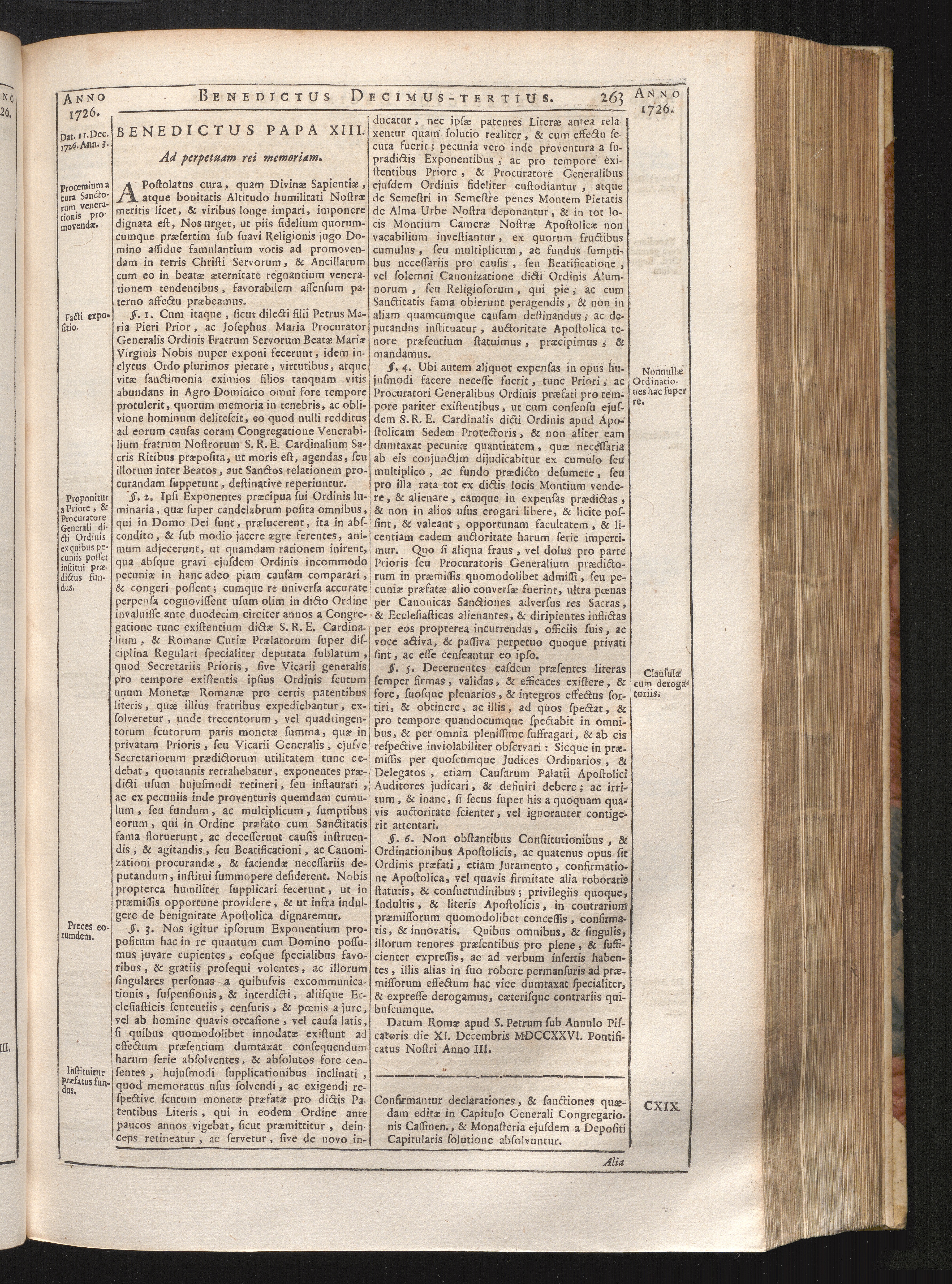 CXIX. De confirmatione quarumdam Sanctionum Capituli Gener. Congr. Cassinen.