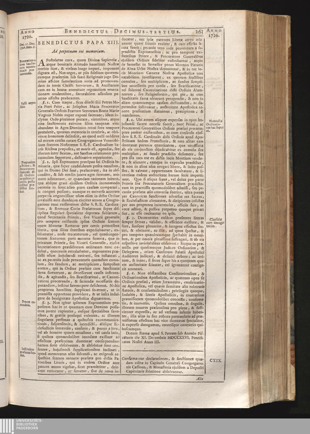 Tomus Decimus-Tertius = Continuationis Pars VII (1740) Complectens Constitutiones ab Innocentio XIII. & Benedicto XIII. editas