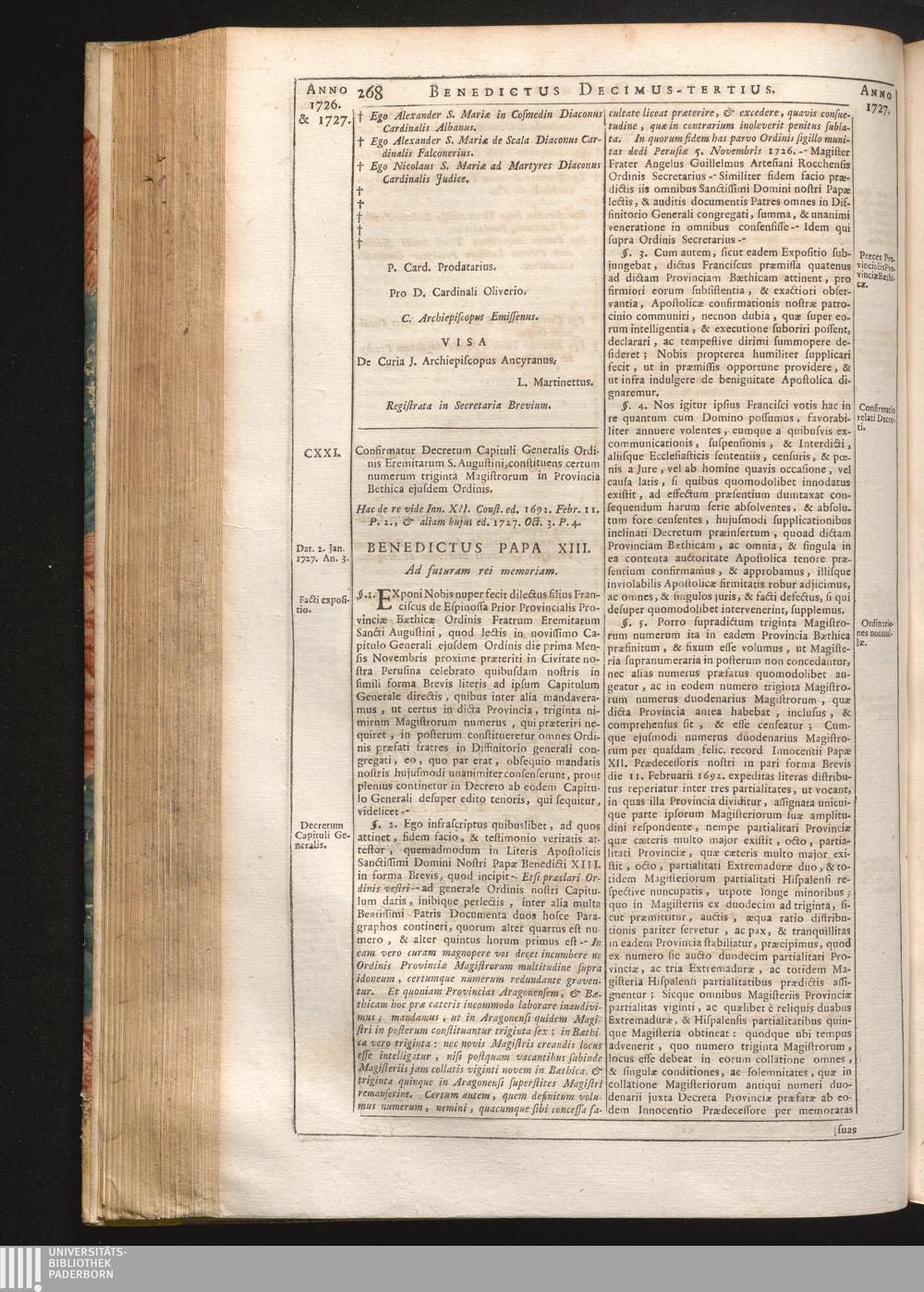 Tomus Decimus-Tertius = Continuationis Pars VII (1740) Complectens Constitutiones ab Innocentio XIII. & Benedicto XIII. editas