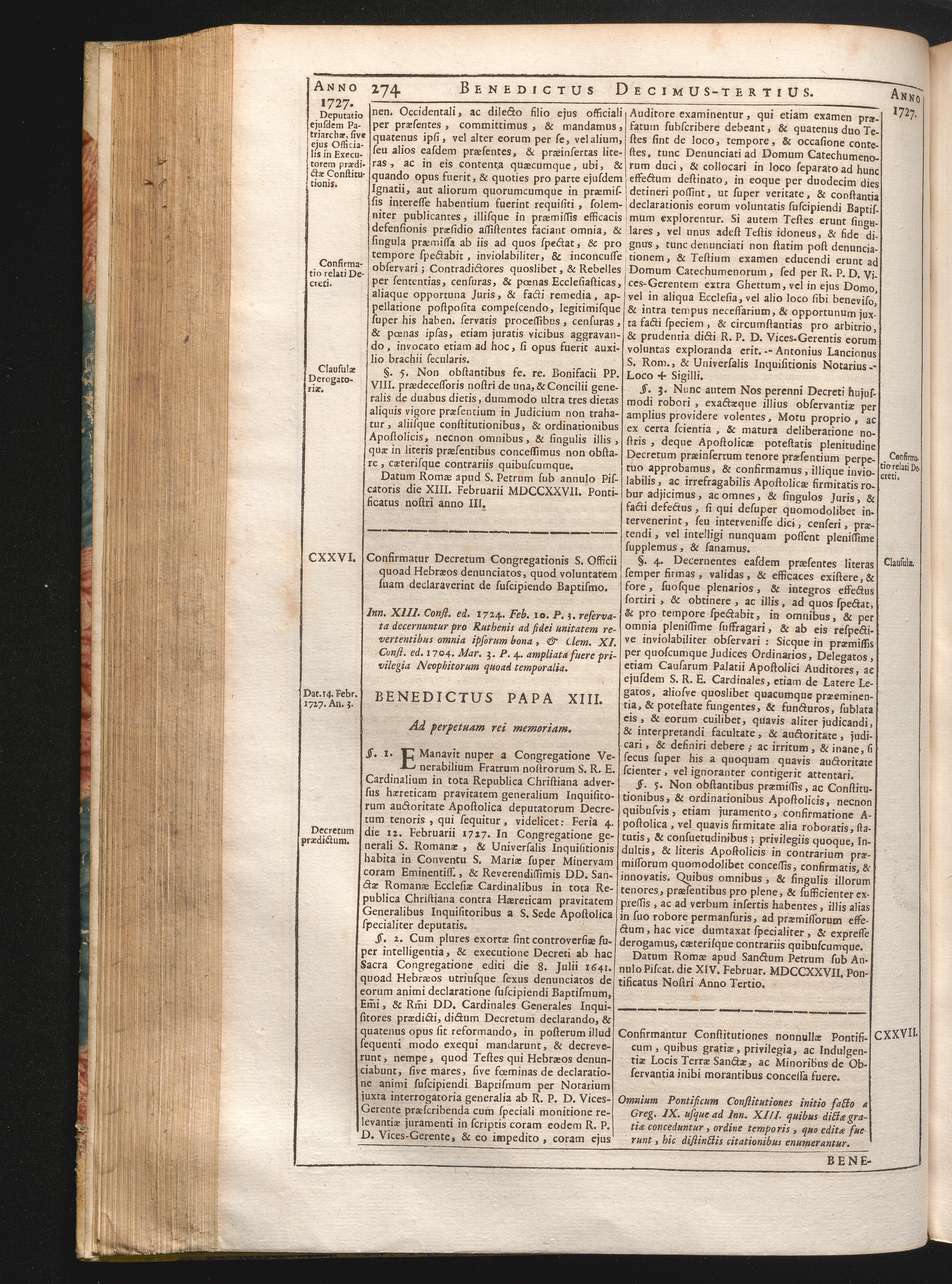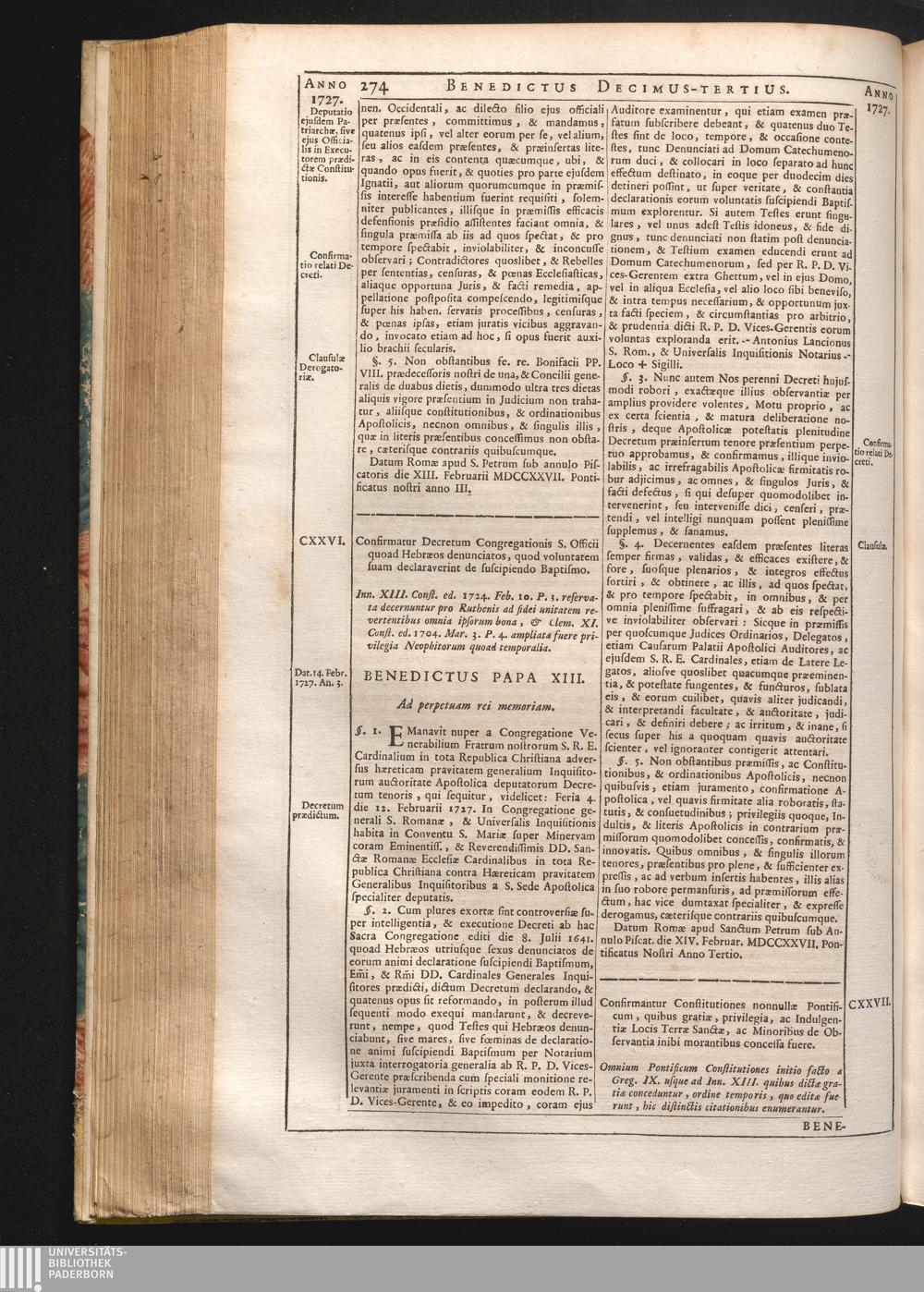 Tomus Decimus-Tertius = Continuationis Pars VII (1740) Complectens Constitutiones ab Innocentio XIII. & Benedicto XIII. editas