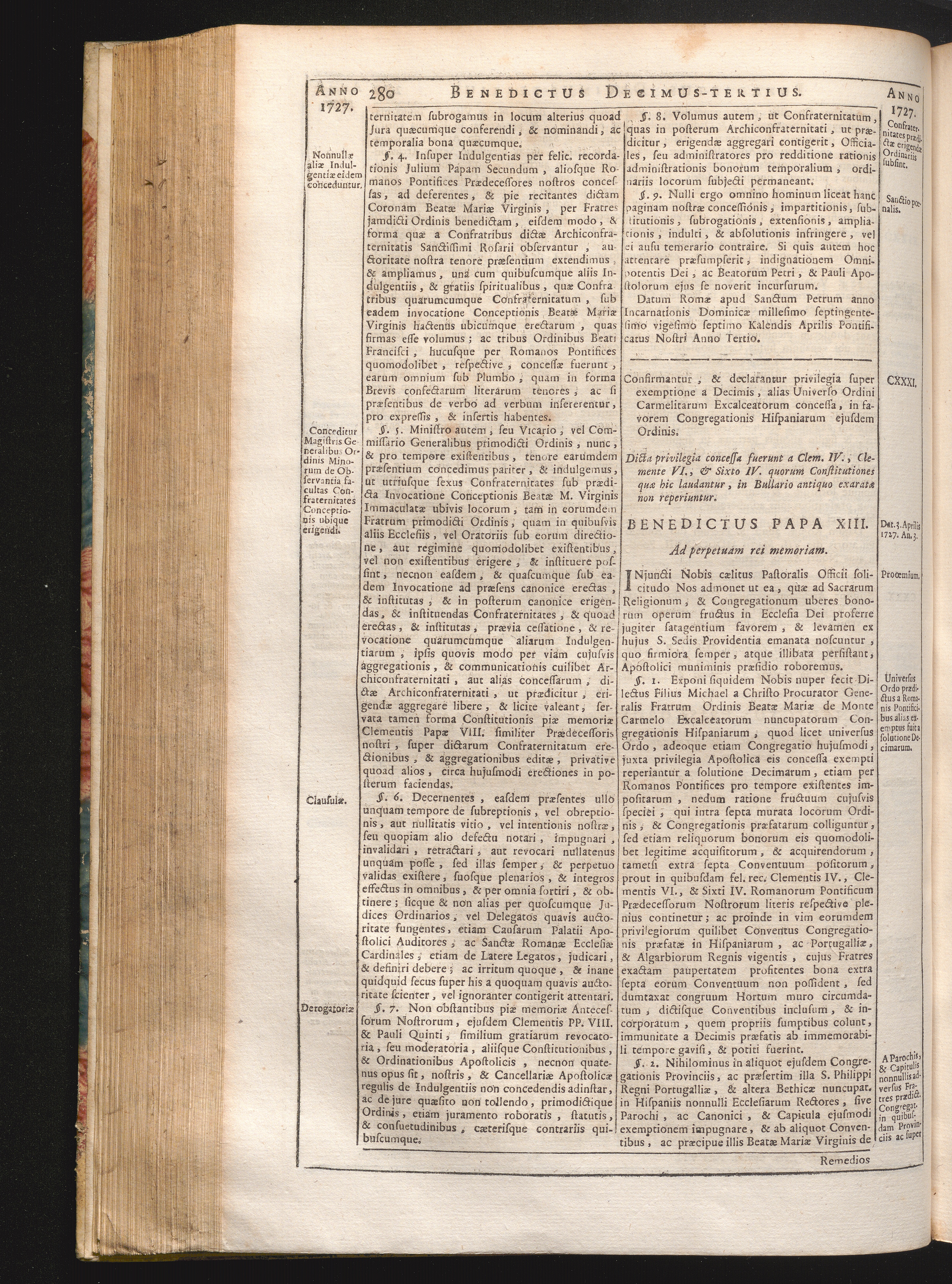 Tomus Decimus-Tertius = Continuationis Pars VII (1740) Complectens Constitutiones ab Innocentio XIII. & Benedicto XIII. editas
