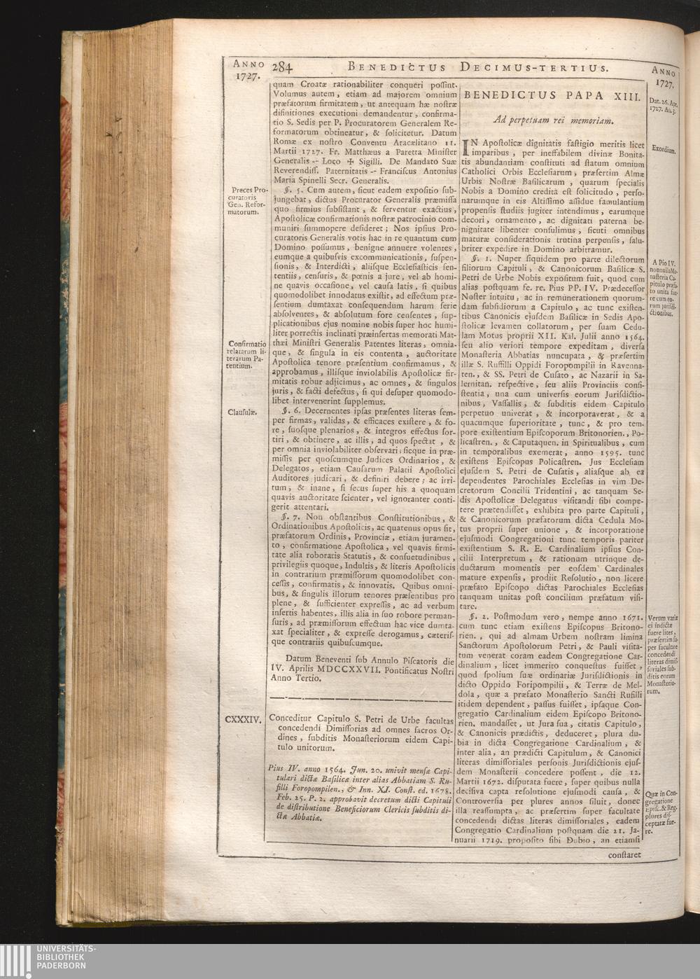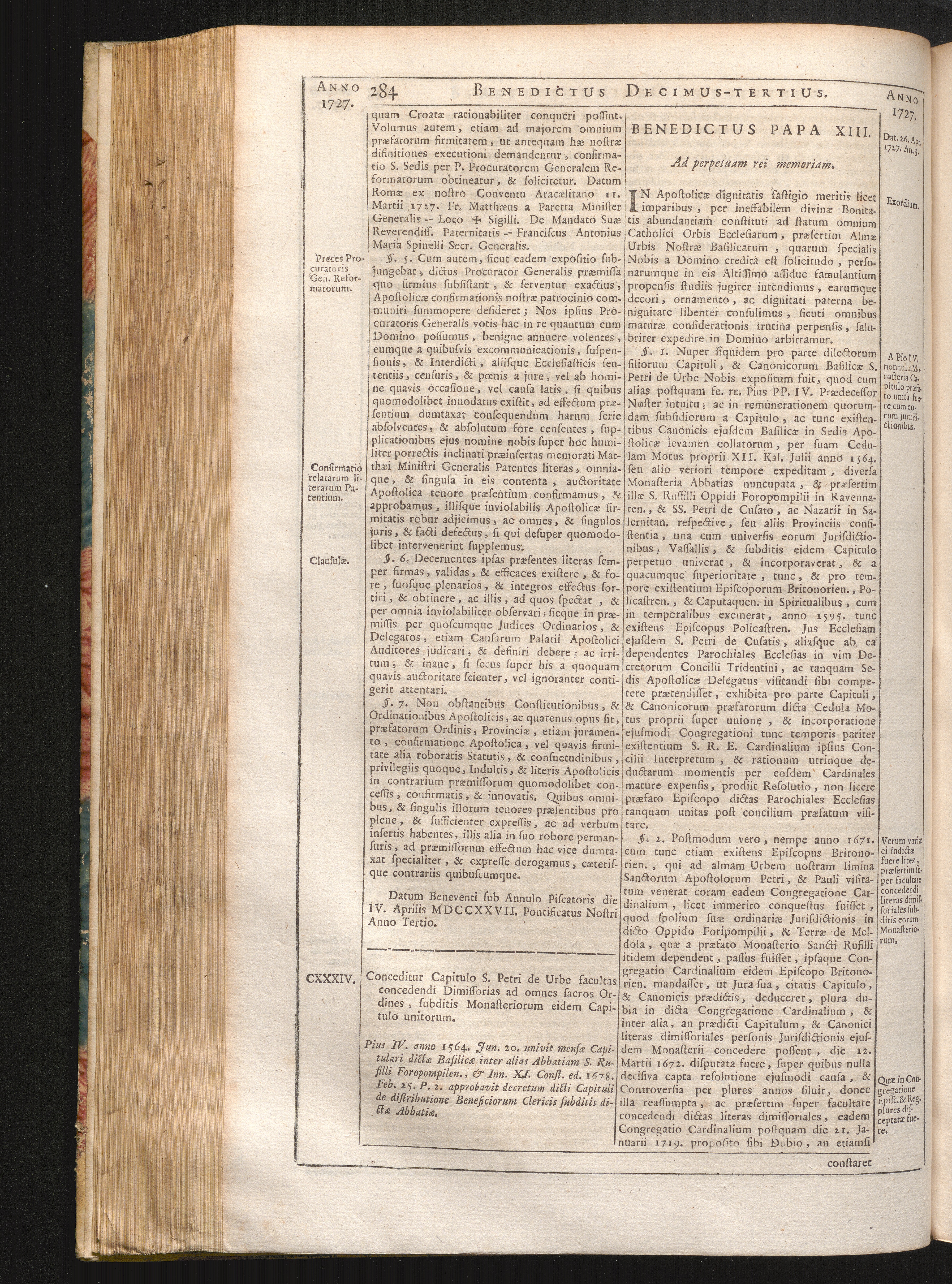 CXXXIV. De facultate concedendi dimissorias subditis suis pro Cap. S. Petri de U[...]