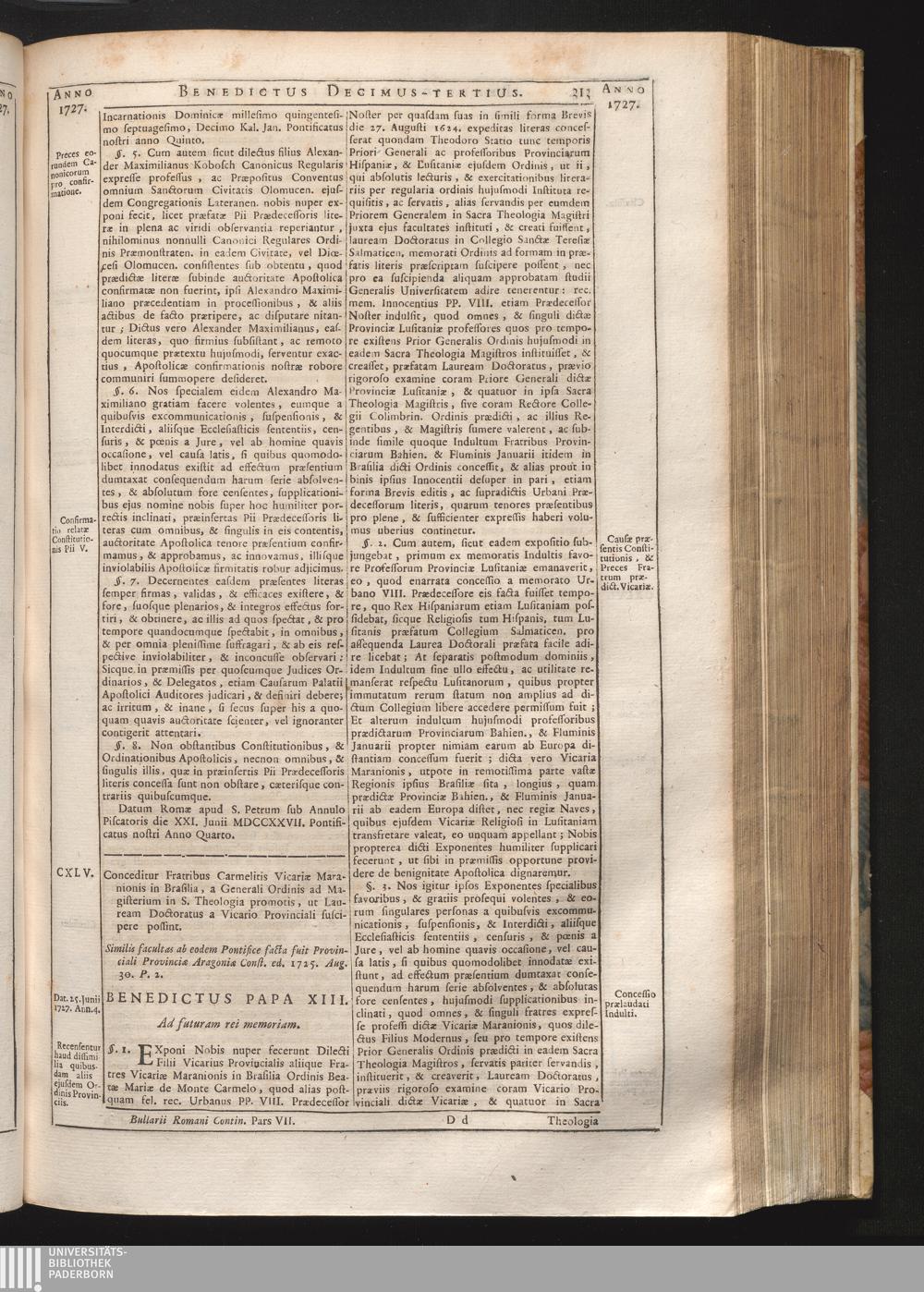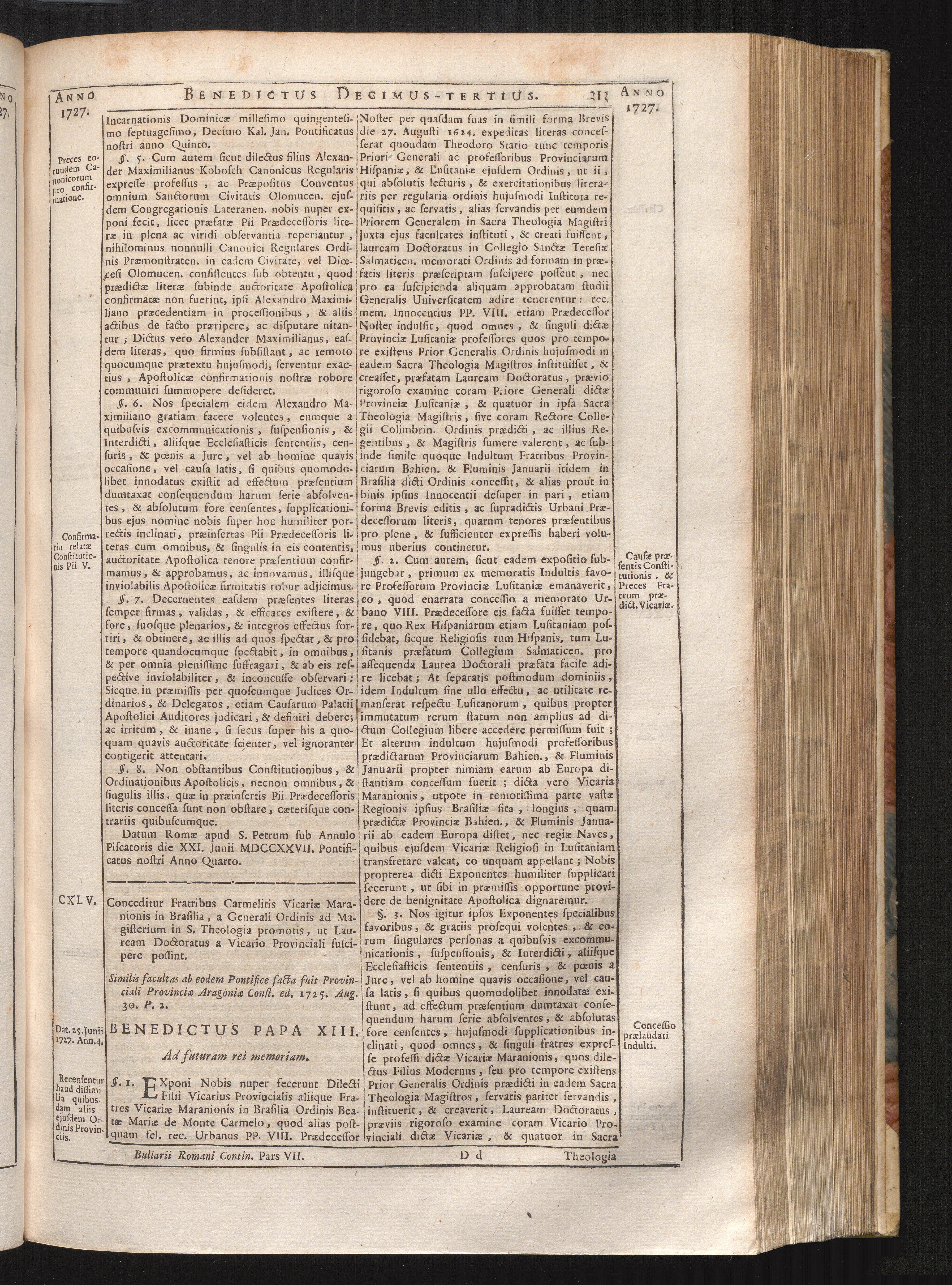 Tomus Decimus-Tertius = Continuationis Pars VII (1740) Complectens Constitutiones ab Innocentio XIII. & Benedicto XIII. editas