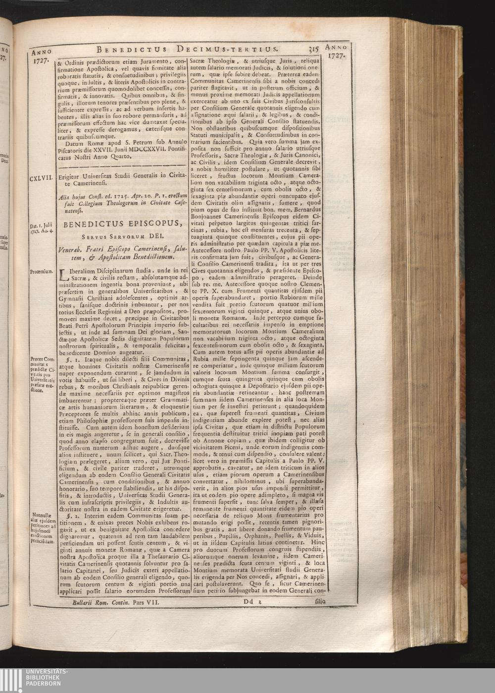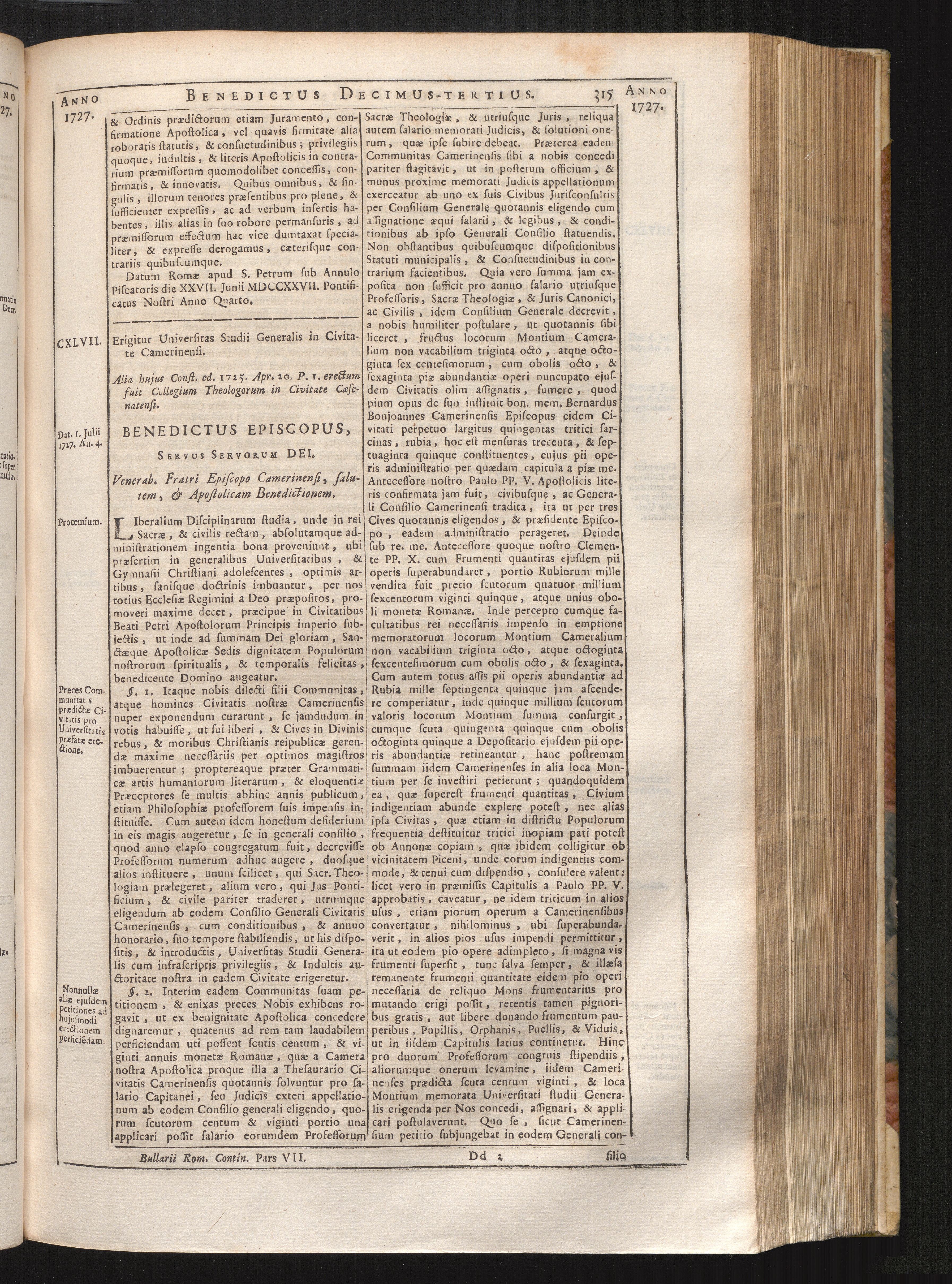 CXLVII. Erectio Studii generalis in Civitate Camerinensi.