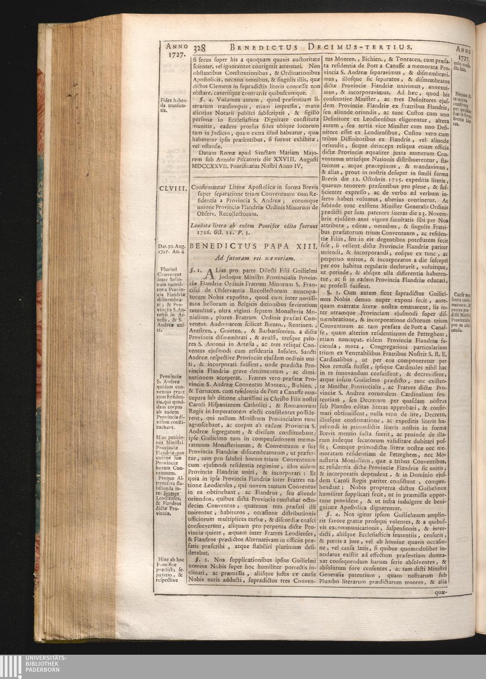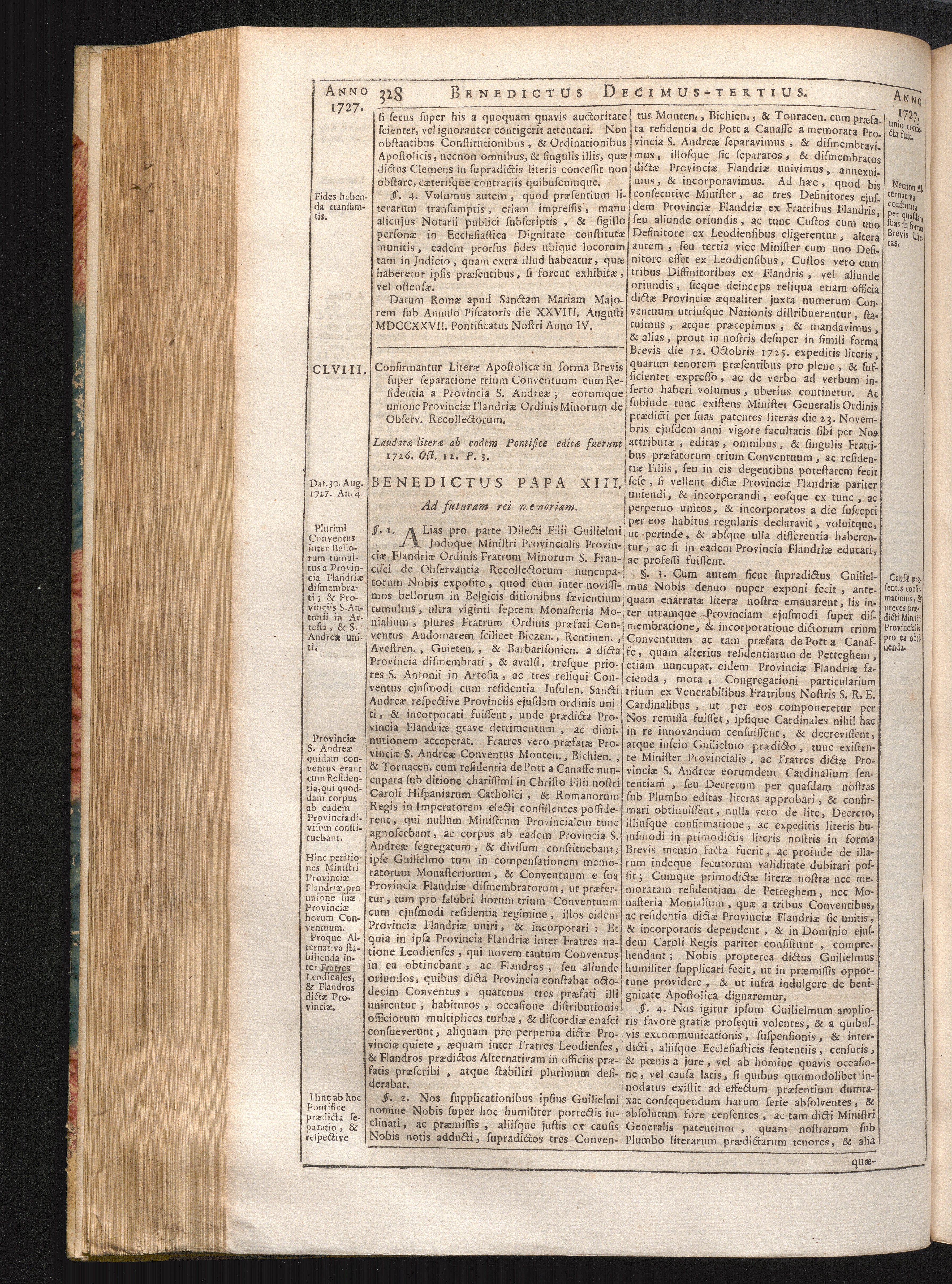 CLVIII. Confirmatio separationis quorumdam Conventuum cum Residentia a Provincia[...]