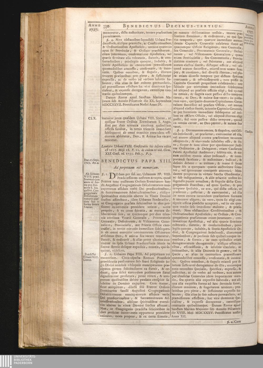 CLX. Statutum circa durationem quorumdam officiorum pro Fratribus Ord. Eremitarum[...]