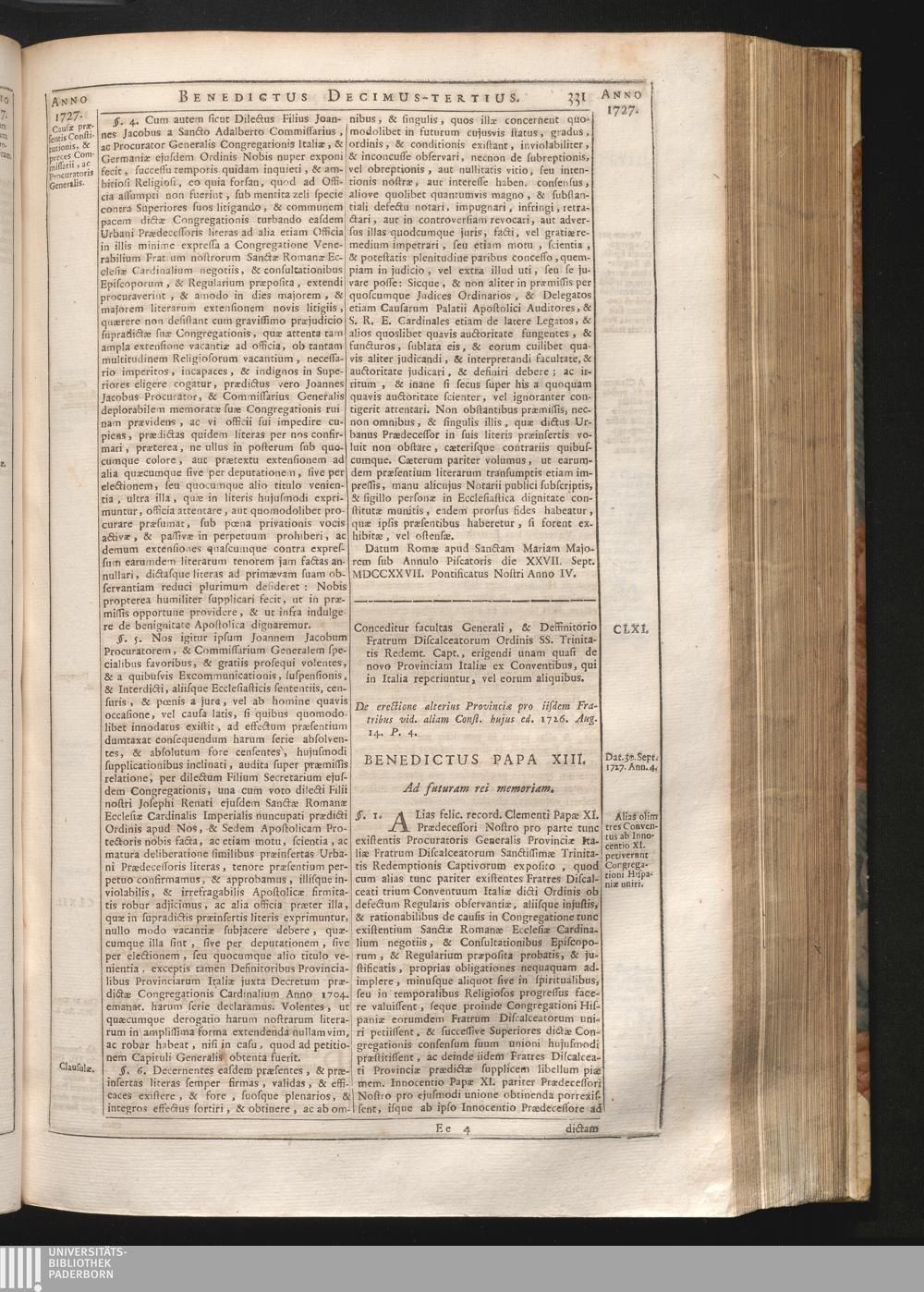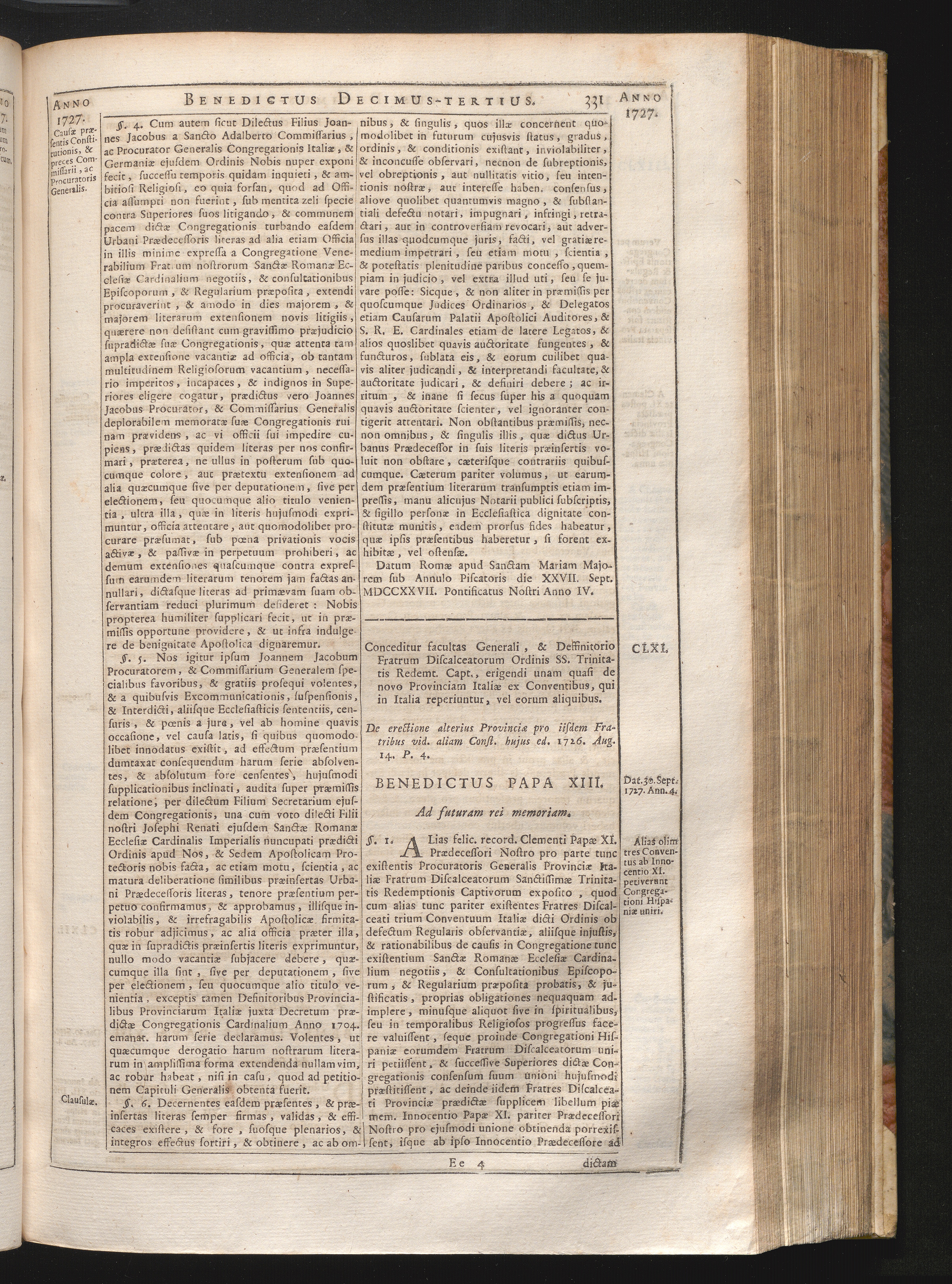 CLXI. De Erectione Provinciæ Italiæ Fratrum Discalceatorum Ord. SS. Trinitatis Redempt.[...]