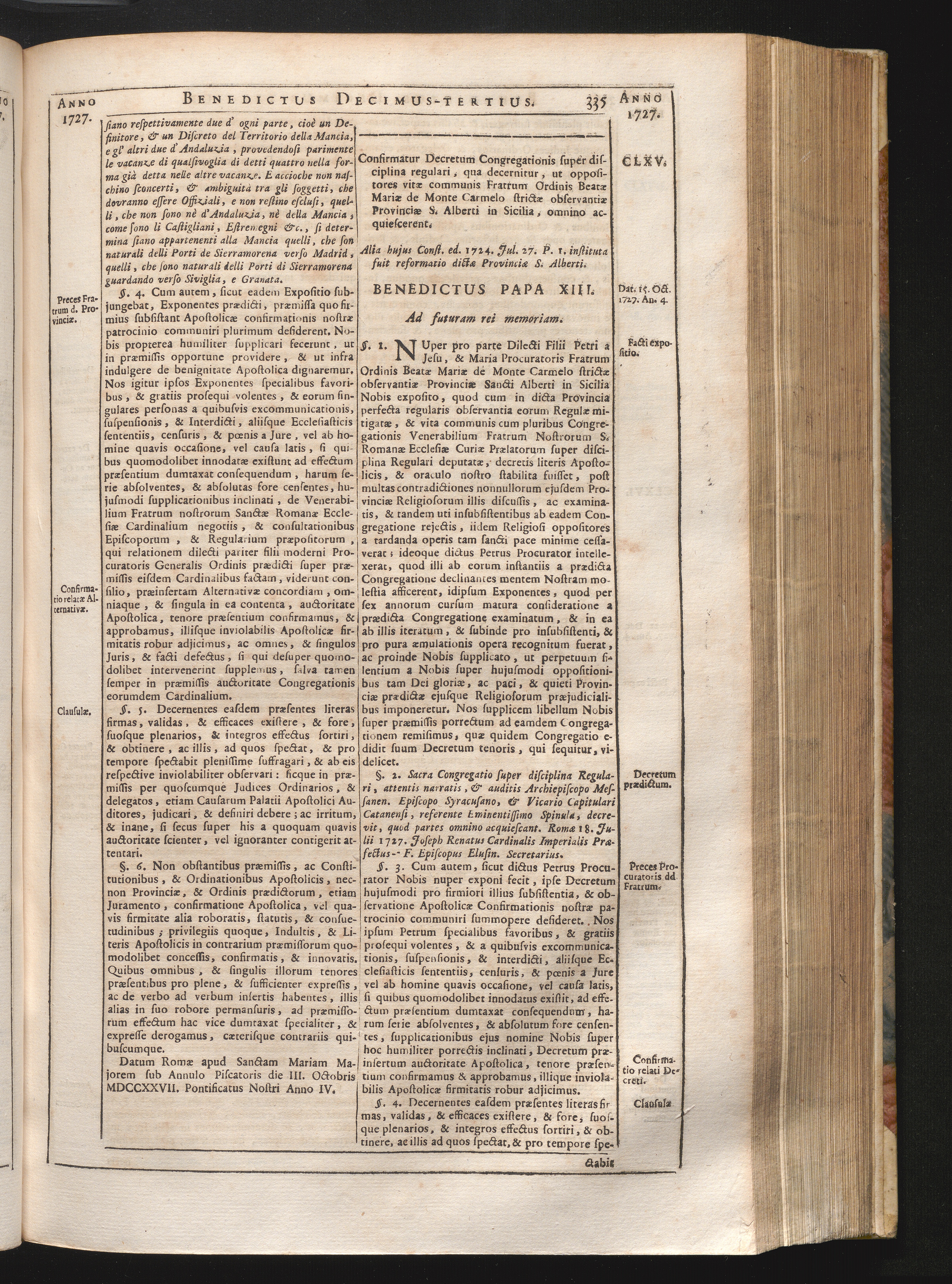 CLXV. Statutum pro oppositoribus ritus communis Fratrum Ord. B. M. de Monte Carmello[...]
