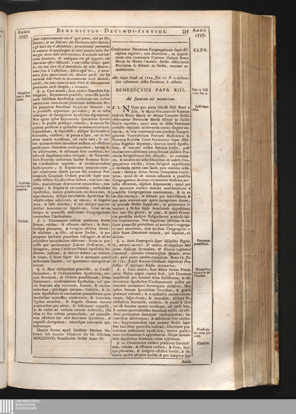 Tomus Decimus-Tertius = Continuationis Pars VII (1740) Complectens Constitutiones ab Innocentio XIII. & Benedicto XIII. editas