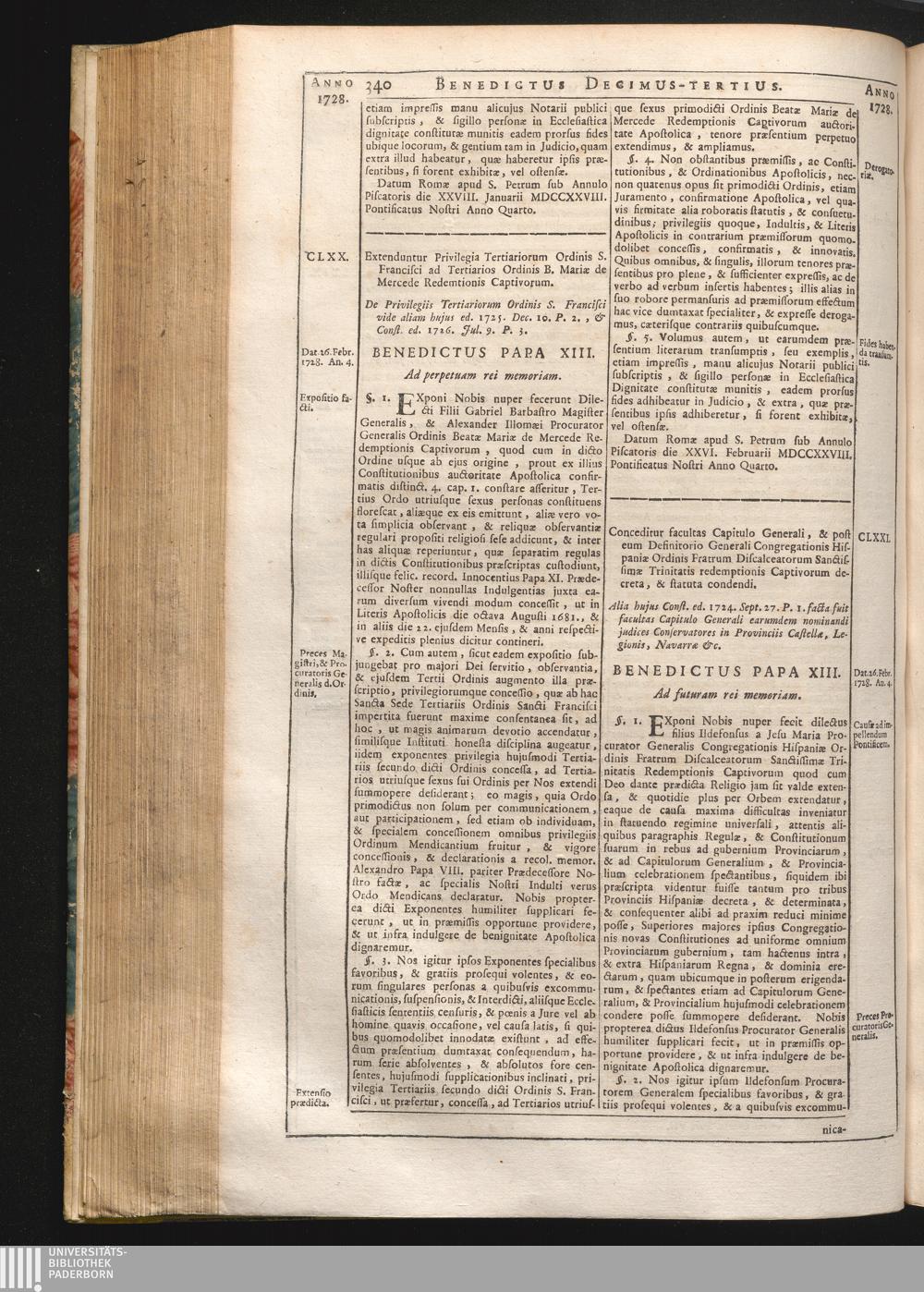 Tomus Decimus-Tertius = Continuationis Pars VII (1740) Complectens Constitutiones ab Innocentio XIII. & Benedicto XIII. editas