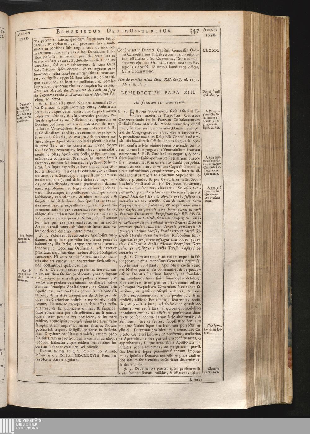 CLXXX. Qædam Decr. Capit. Generalis Ordinis Carmelitarum Discalceat. confirmantu[...]