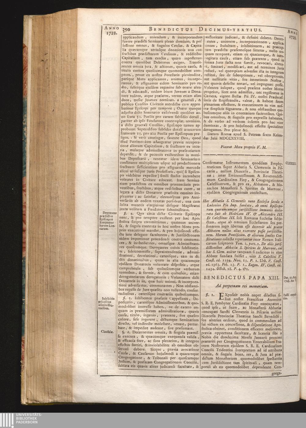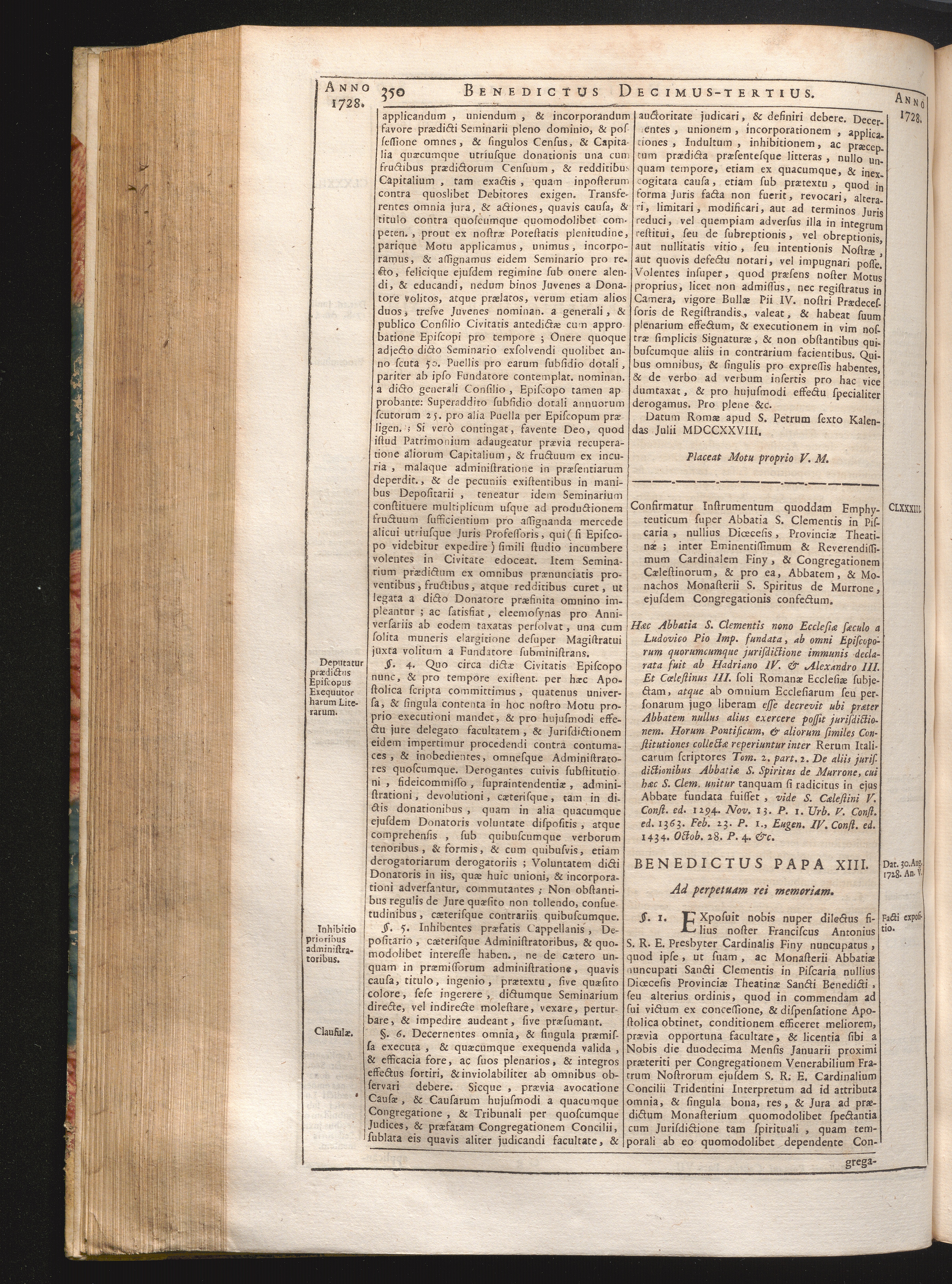 Tomus Decimus-Tertius = Continuationis Pars VII (1740) Complectens Constitutiones ab Innocentio XIII. & Benedicto XIII. editas