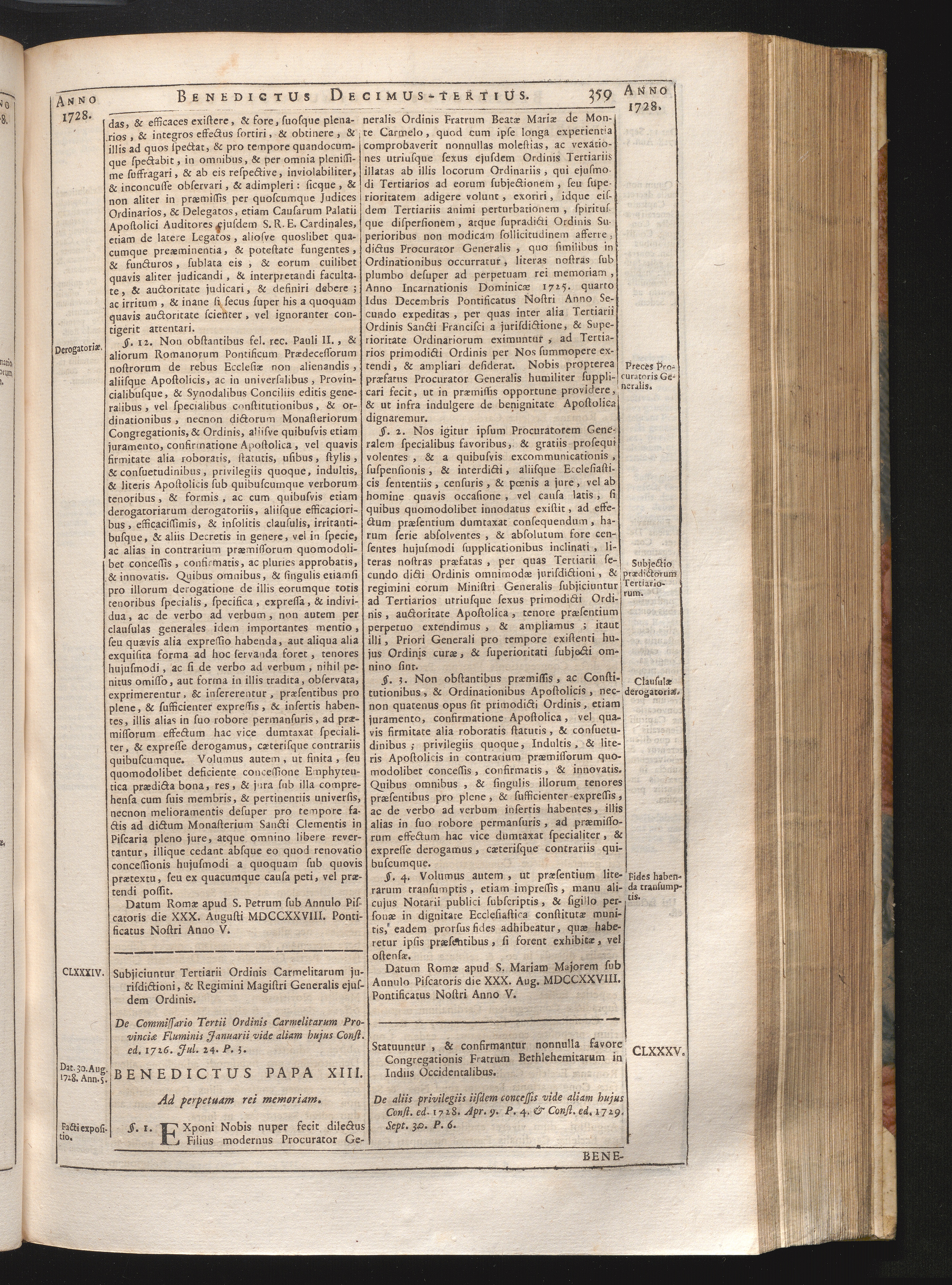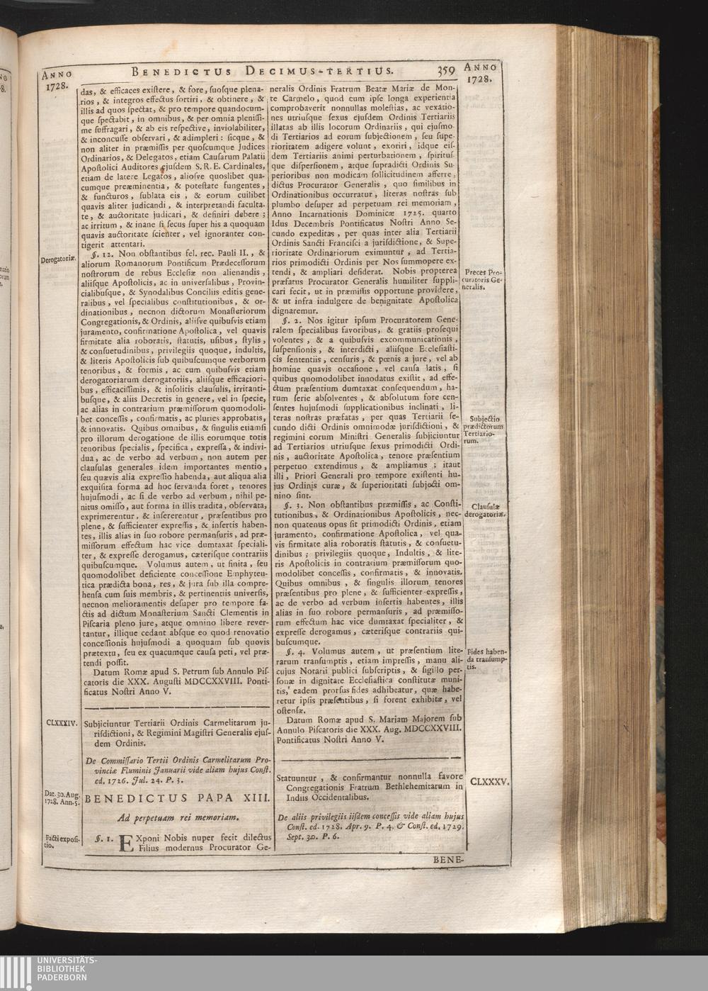 Tomus Decimus-Tertius = Continuationis Pars VII (1740) Complectens Constitutiones ab Innocentio XIII. & Benedicto XIII. editas