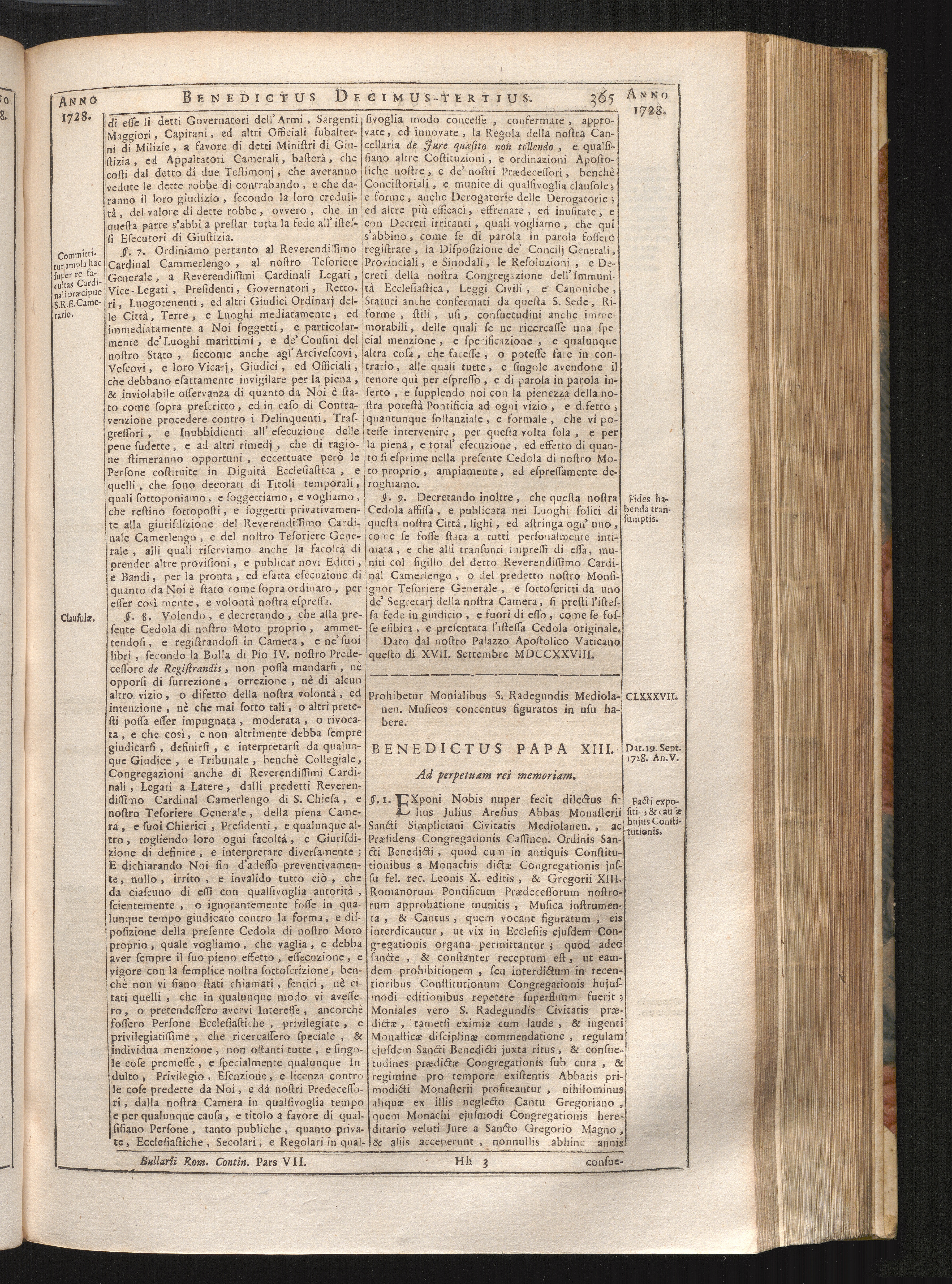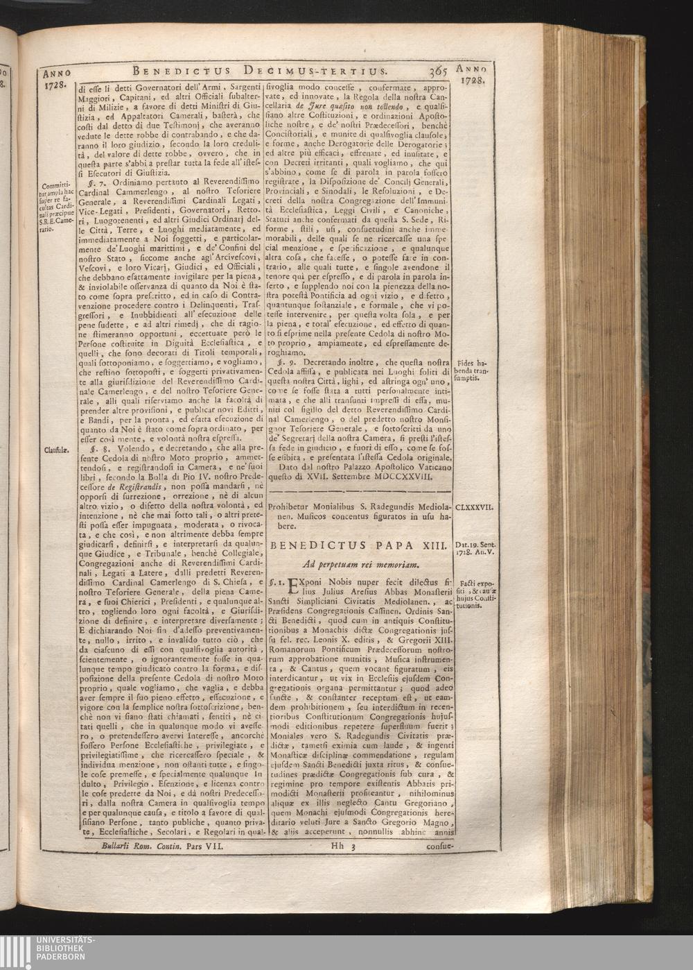 Tomus Decimus-Tertius = Continuationis Pars VII (1740) Complectens Constitutiones ab Innocentio XIII. & Benedicto XIII. editas