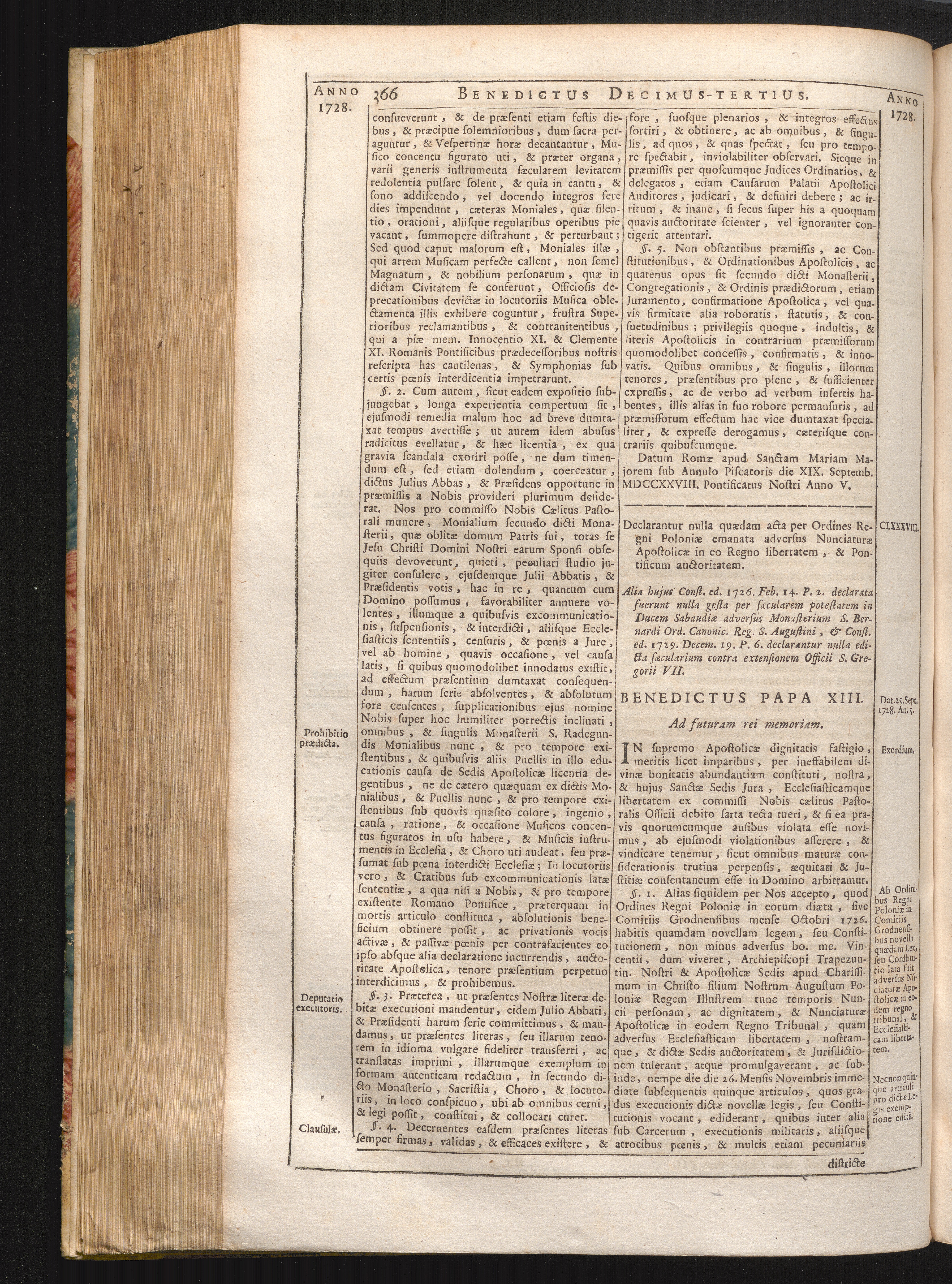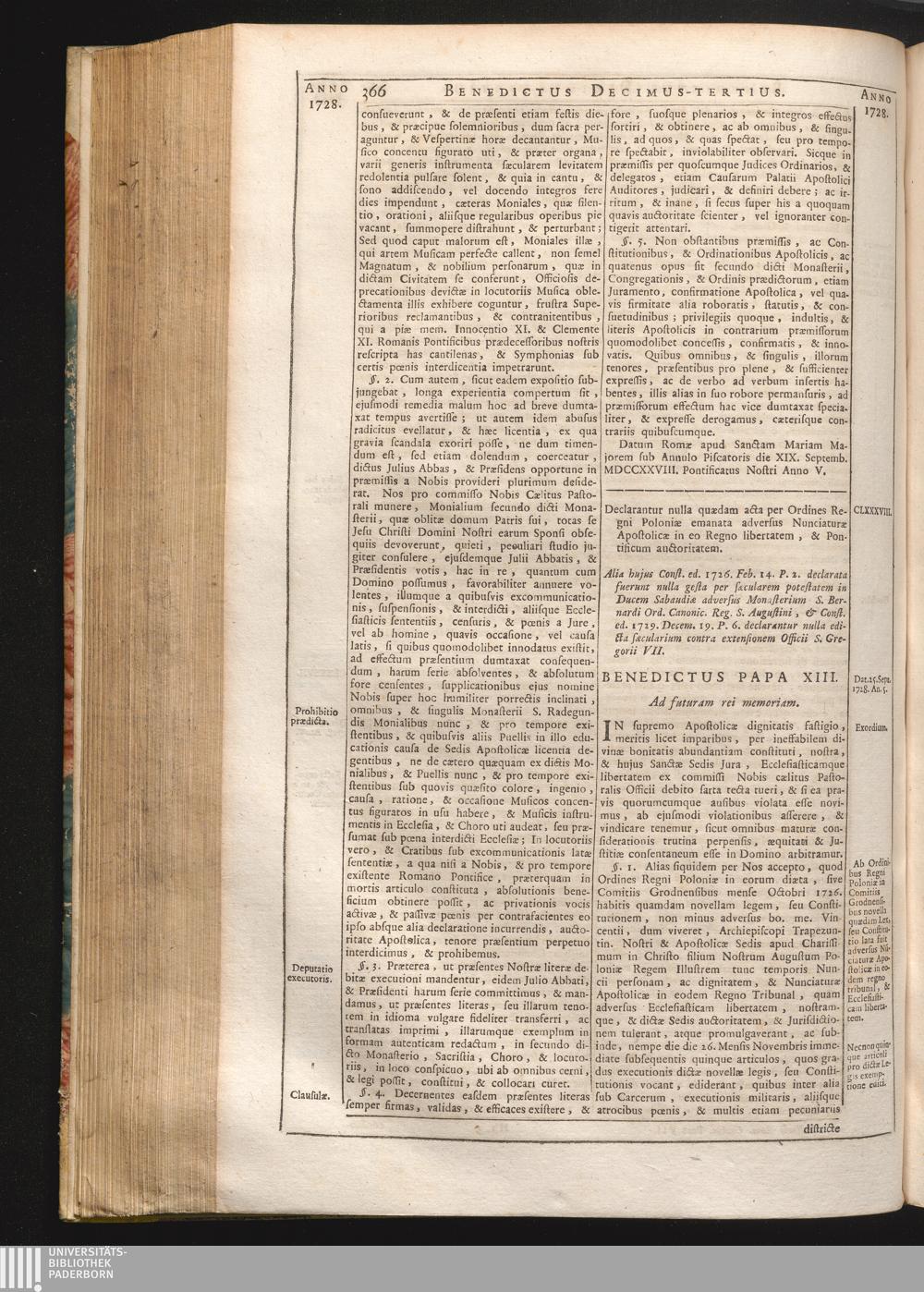 Tomus Decimus-Tertius = Continuationis Pars VII (1740) Complectens Constitutiones ab Innocentio XIII. & Benedicto XIII. editas