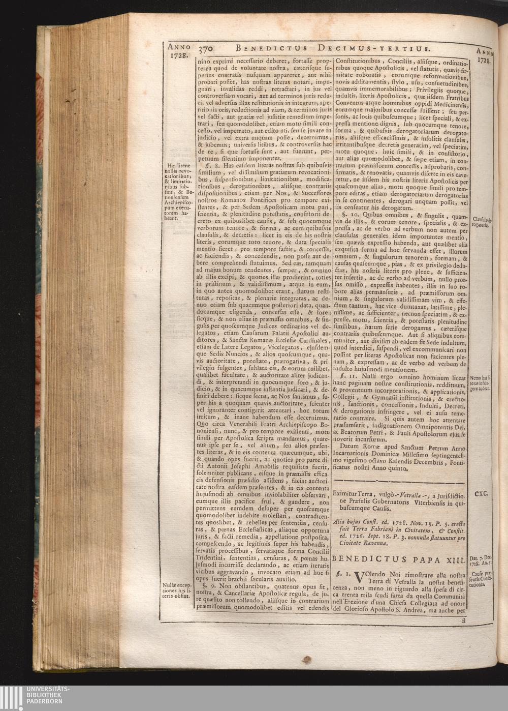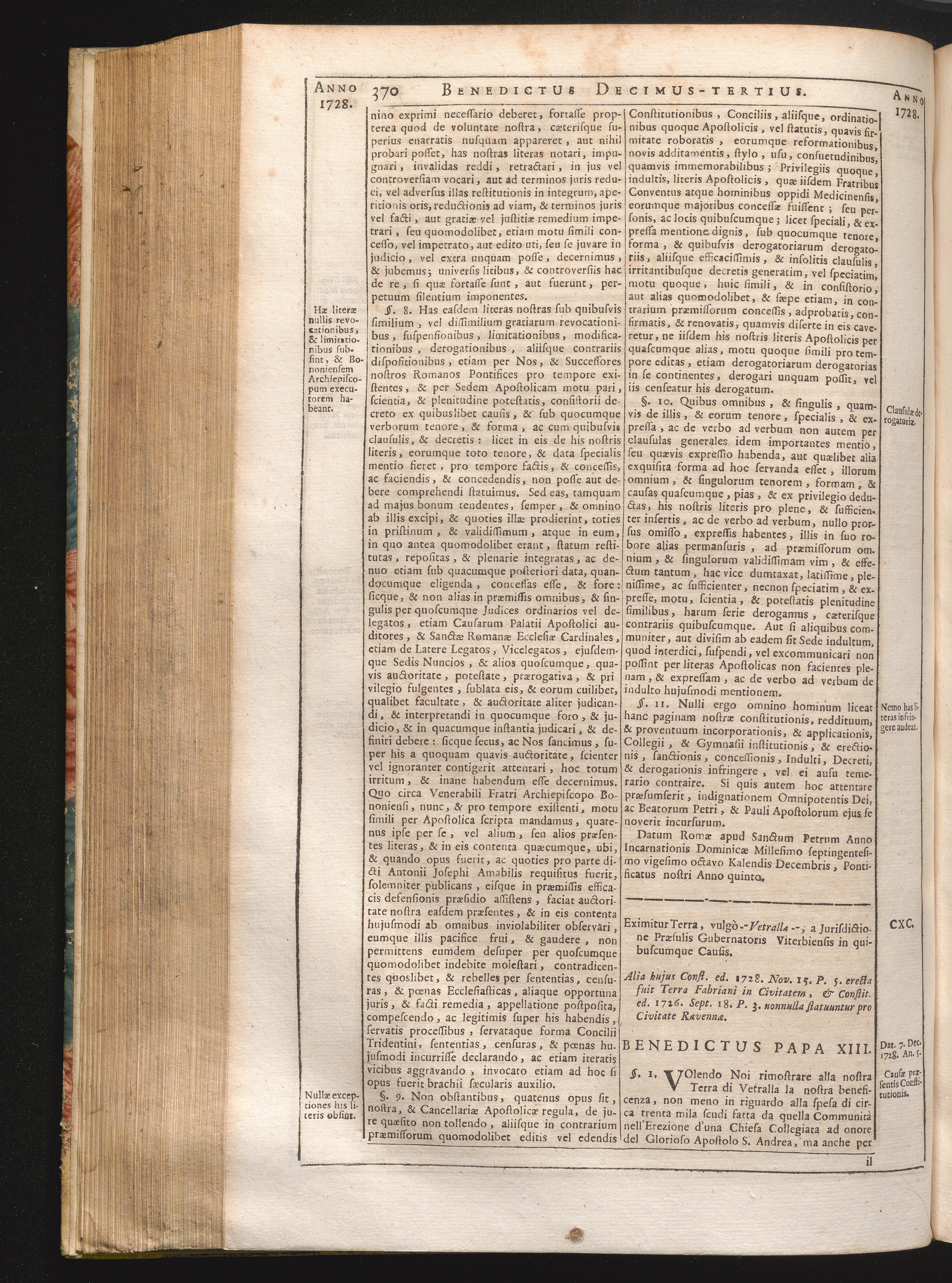 Tomus Decimus-Tertius = Continuationis Pars VII (1740) Complectens Constitutiones ab Innocentio XIII. & Benedicto XIII. editas