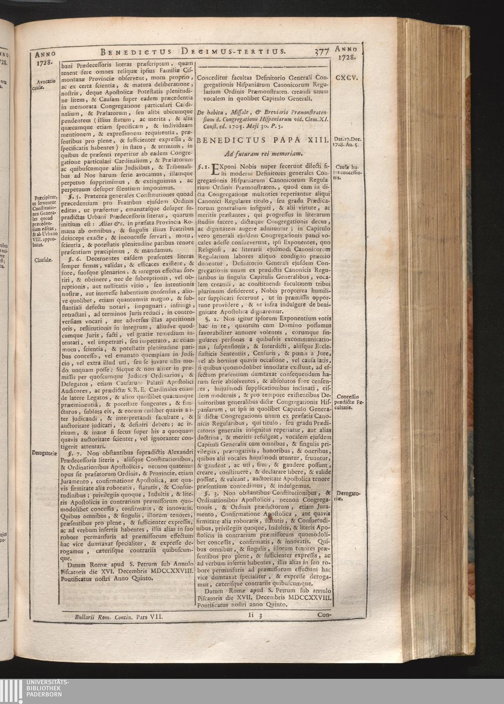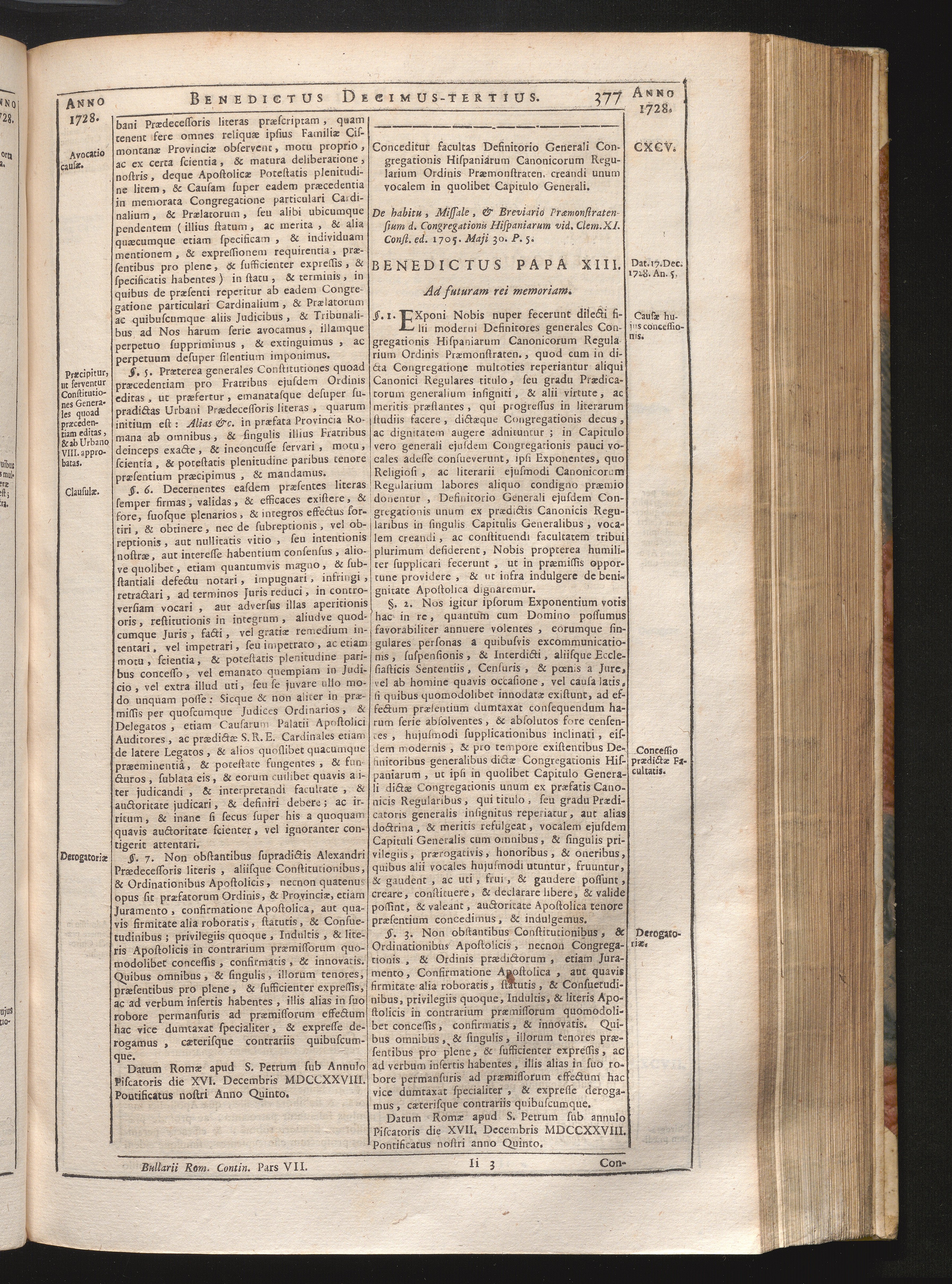CXCV. De facultate concessa Definitorio Generali Congreg. Hispaniarum Canon. regul.[...]