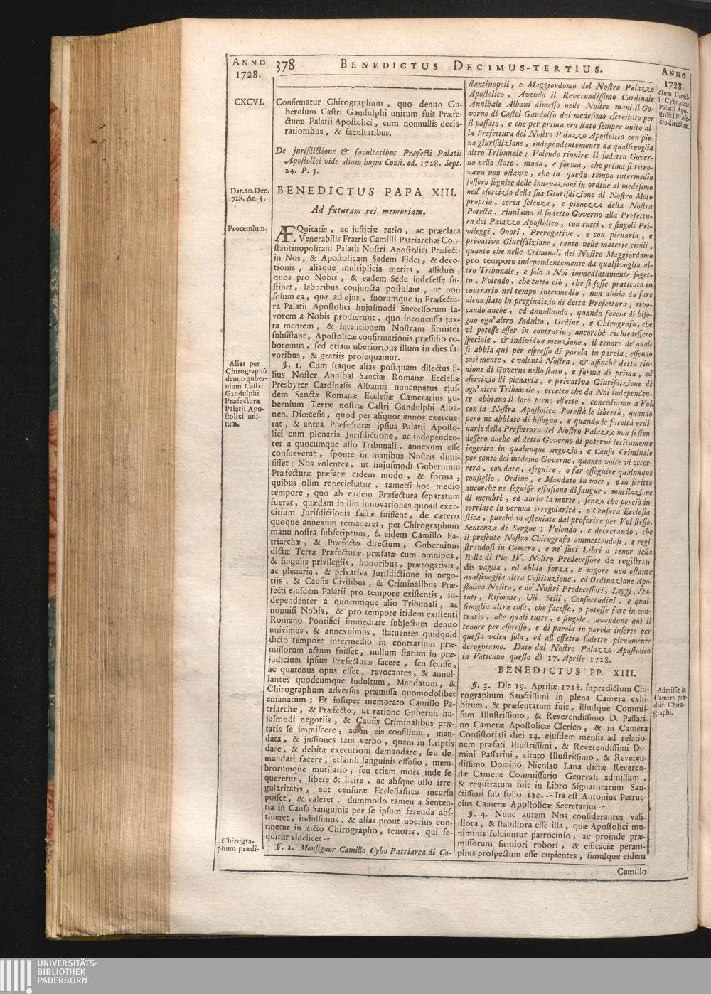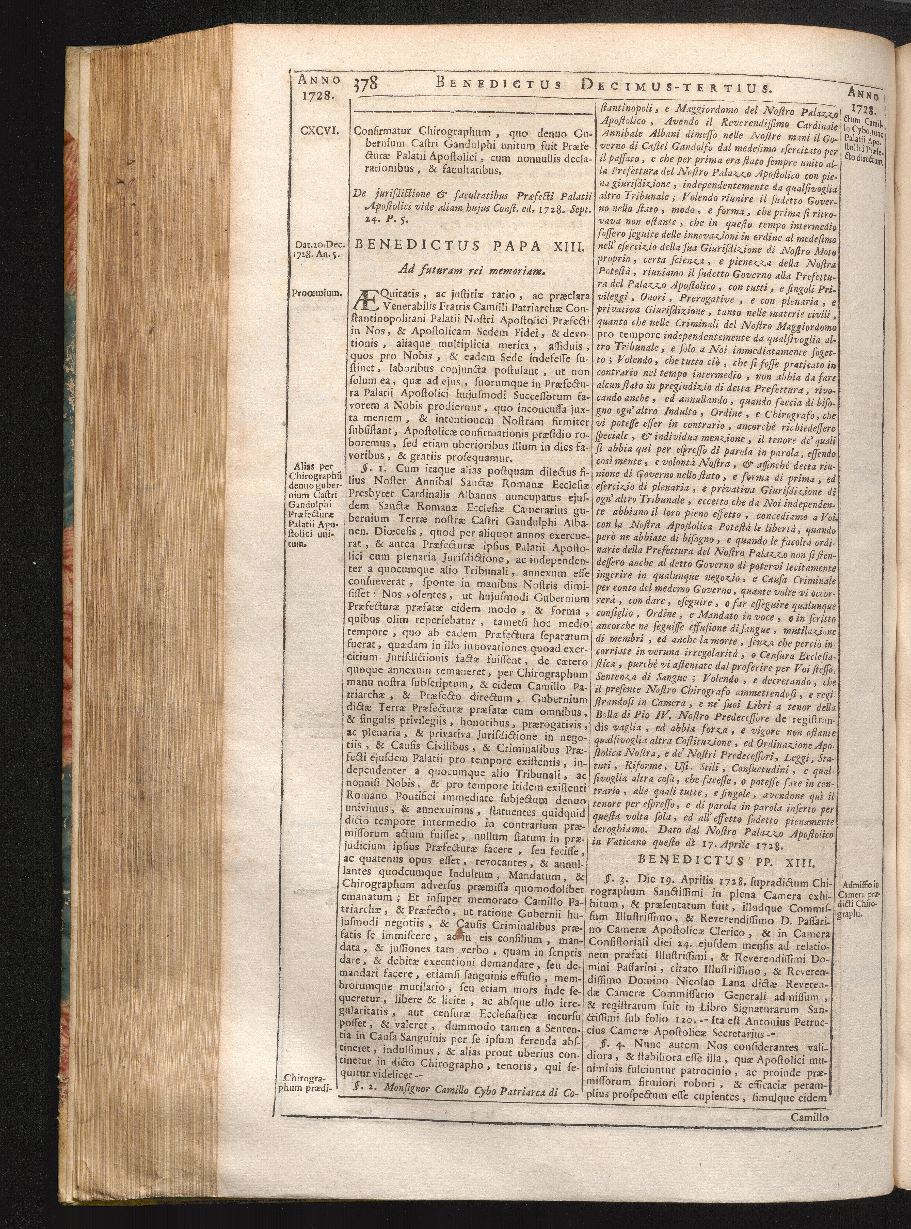 CXCVI. Confirmatio Chirographi, quo Gubernium Castri Ganduiphi unitum fuit Præfecturæ[...]