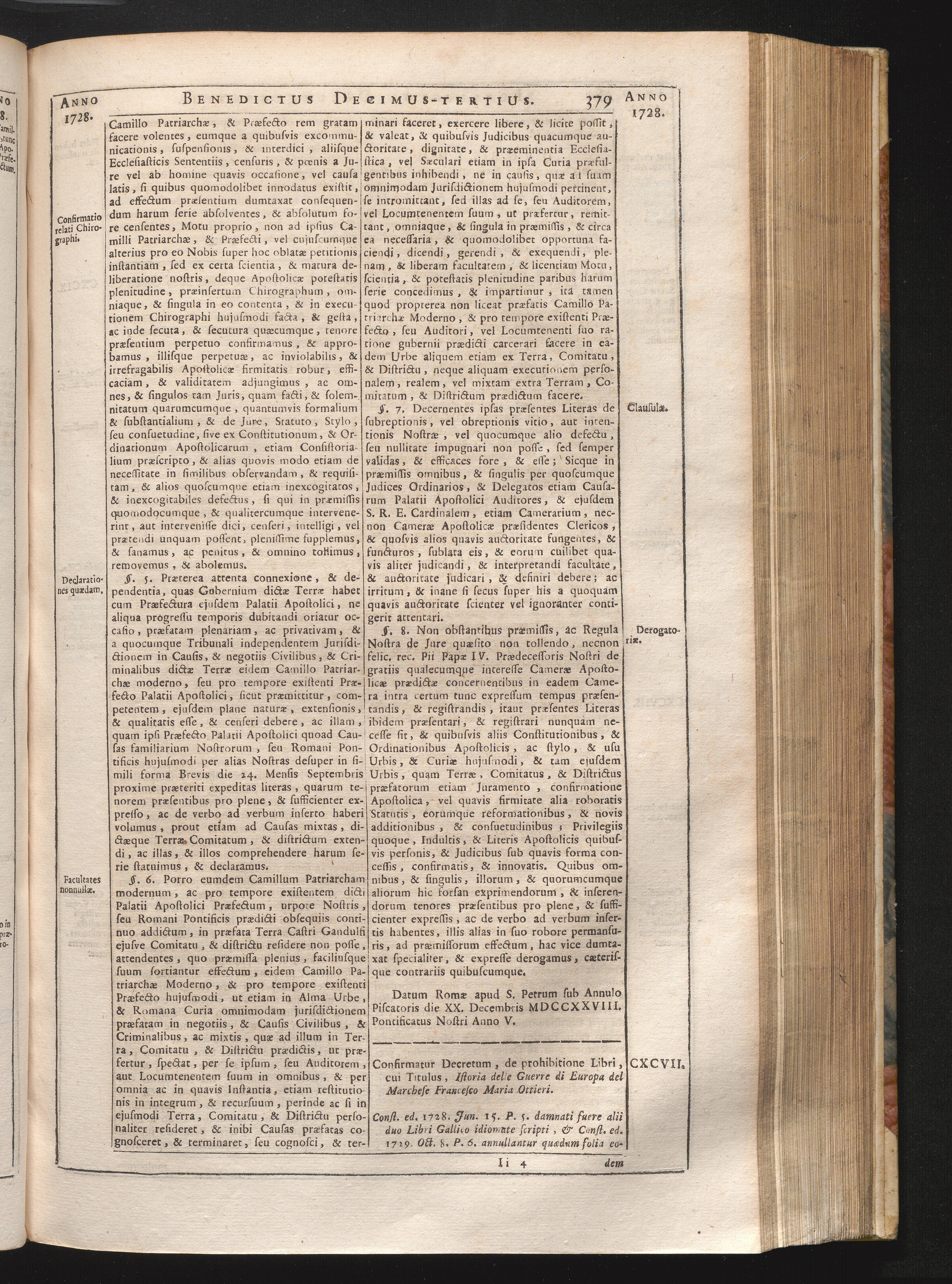 CXCVII. Confirmatio Decreti de prohibitione eujusdam libri Italico idiomate impr[...]