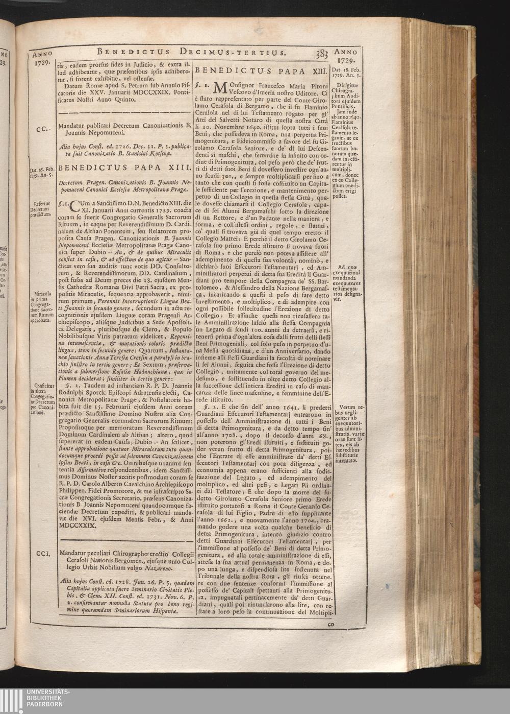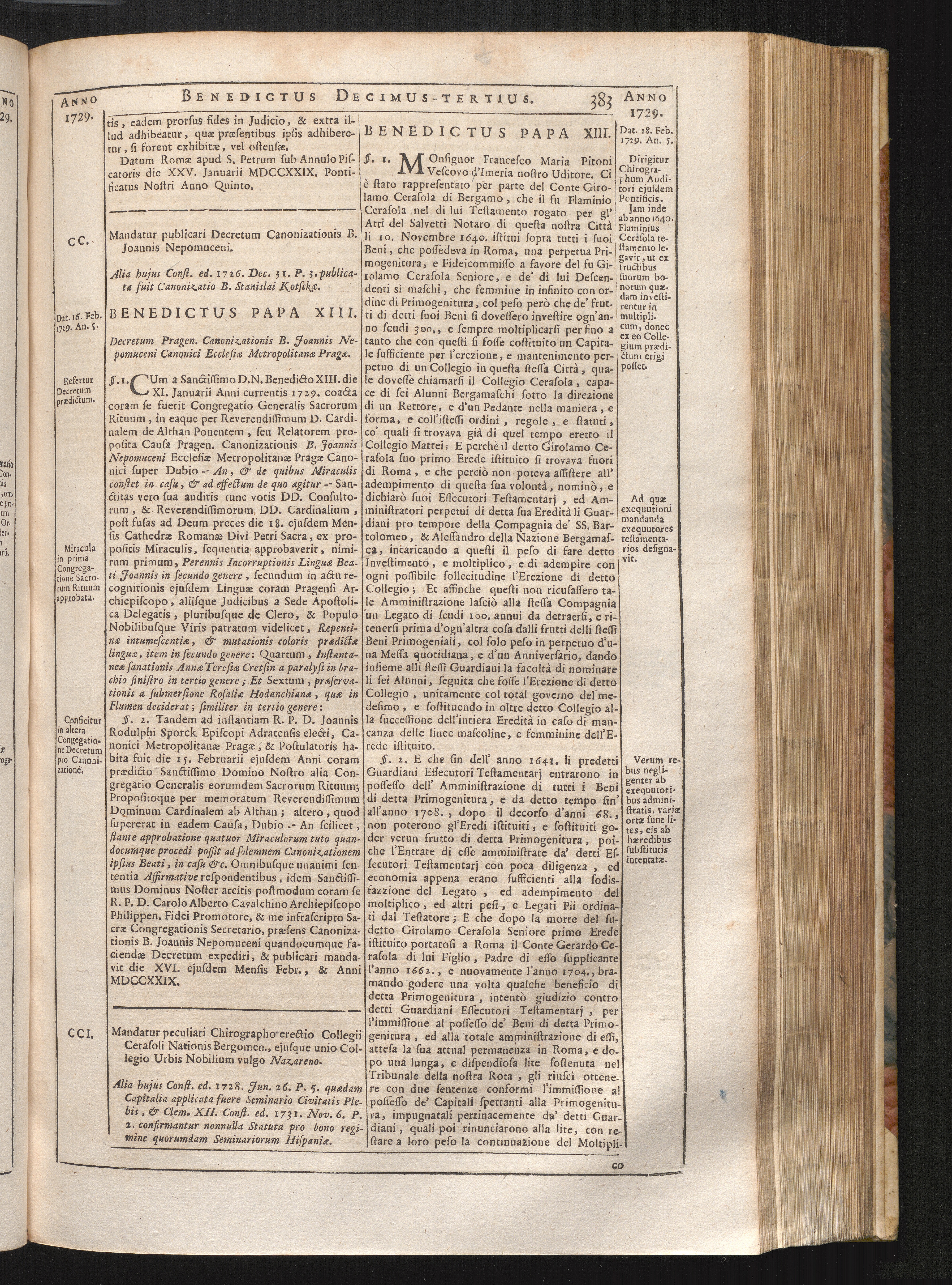 CCI. De erectione Collegii Cerasoli, ejusque unione Collegio Urbus vulgo-Nazaren[...]